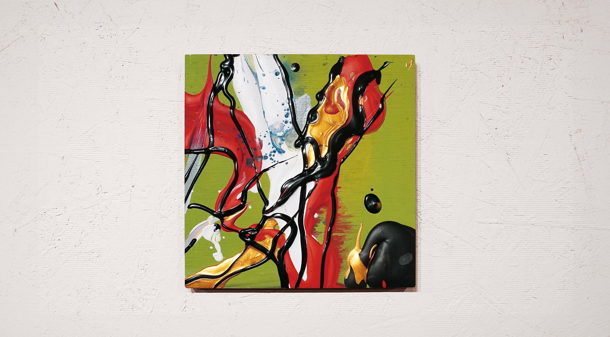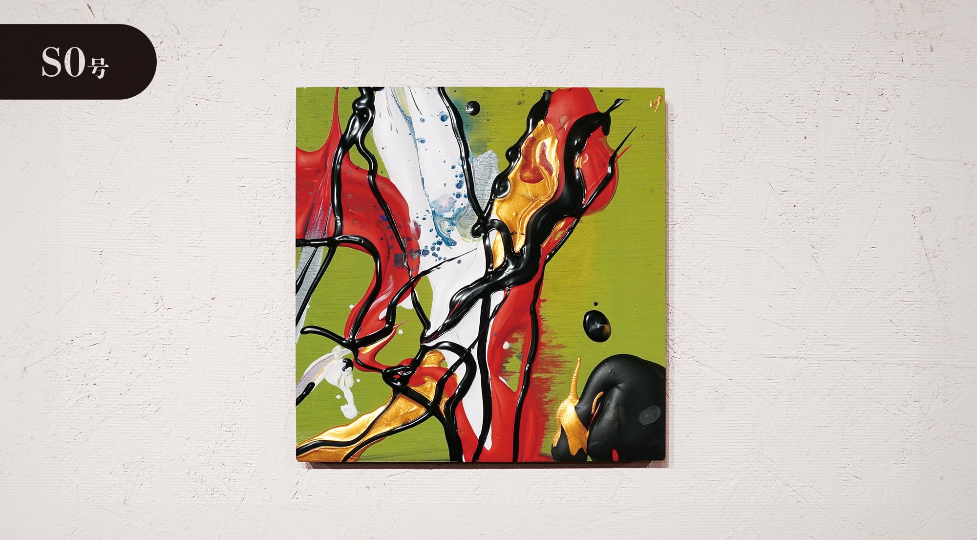 ●画材:①カラージェッソ(アクリル画材)/ホルベイン社、②木工用ボンド(酢酸ビニル樹脂 ※ホルムアルデヒド、フタル酸系可塑剤は使用していません)/コニシ株式会社、③ネオカラーブラック(水性絵具)/ターナー色彩株式会社