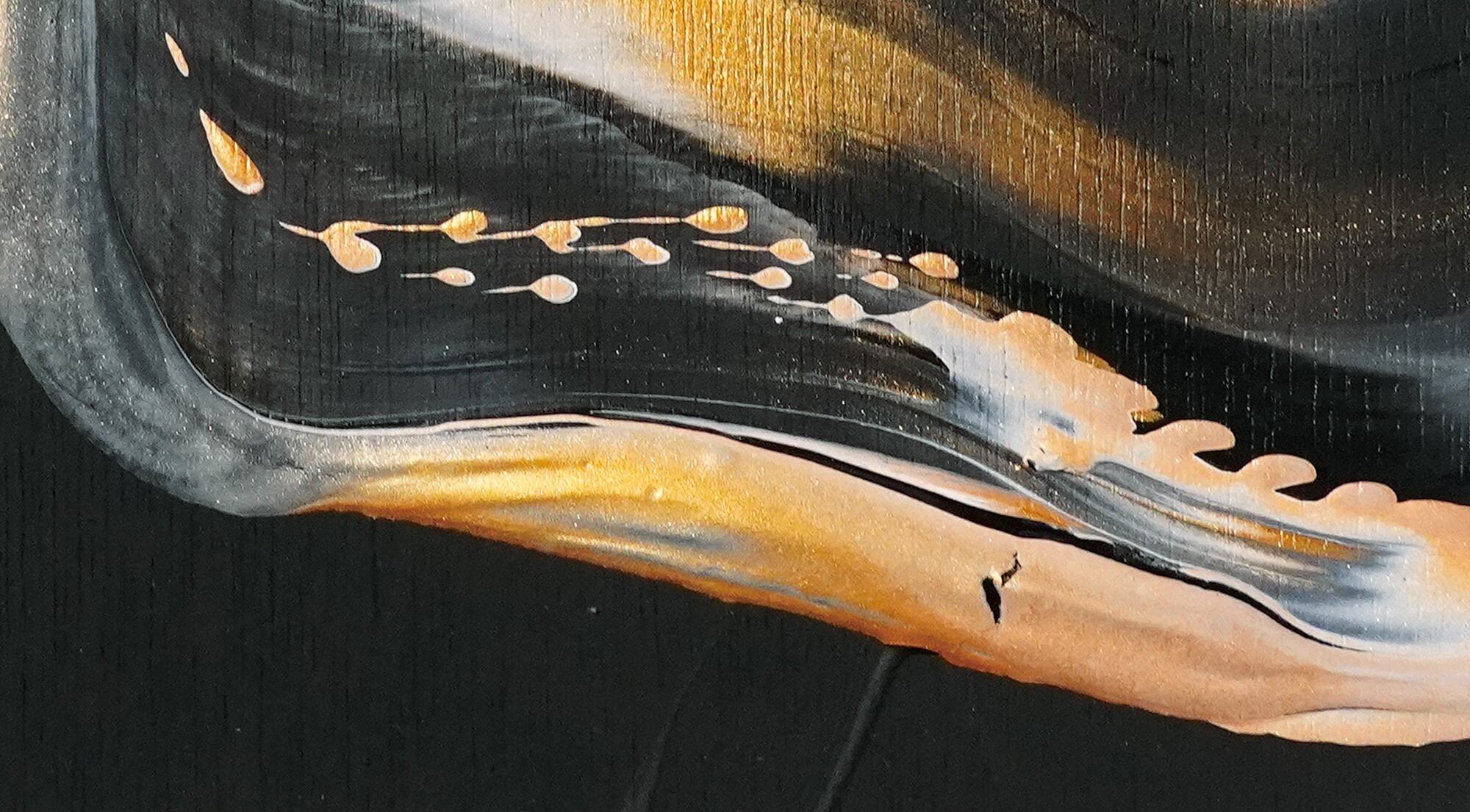 ●画材:①カラージェッソ(アクリル画材)/ホルベイン社、②木工用ボンド(酢酸ビニル樹脂 ※ホルムアルデヒド、フタル酸系可塑剤は使用していません)/コニシ株式会社、③ネオカラーブラック(水性絵具)/ターナー色彩株式会社