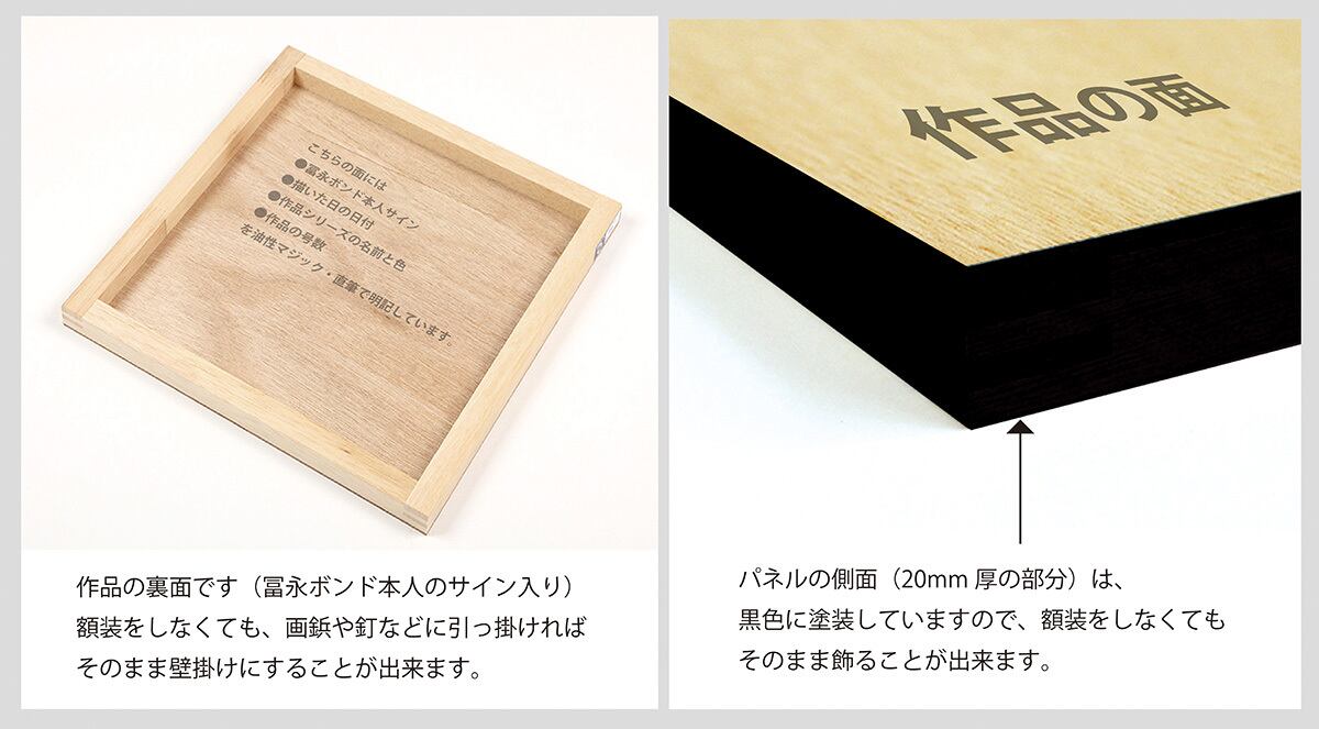 ◆作品の裏面に、冨永ボンド本人のSignature(直筆サイン)が入っております。作品を描いた日付も記載しています。