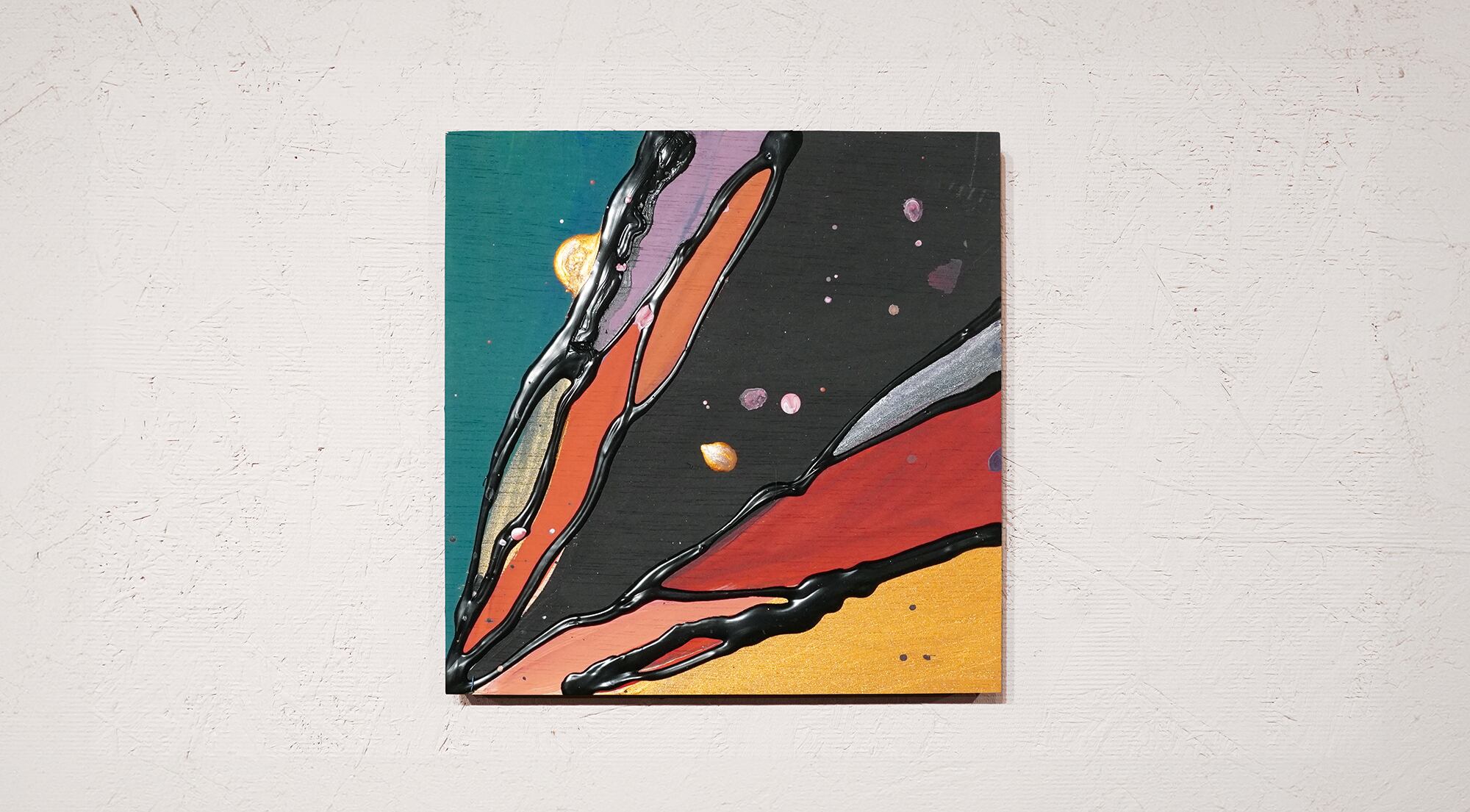 ●画材:①カラージェッソ(アクリル画材)/ホルベイン社、②木工用ボンド(酢酸ビニル樹脂 ※ホルムアルデヒド、フタル酸系可塑剤は使用していません)/コニシ株式会社、③ネオカラーブラック(水性絵具)/ターナー色彩株式会社