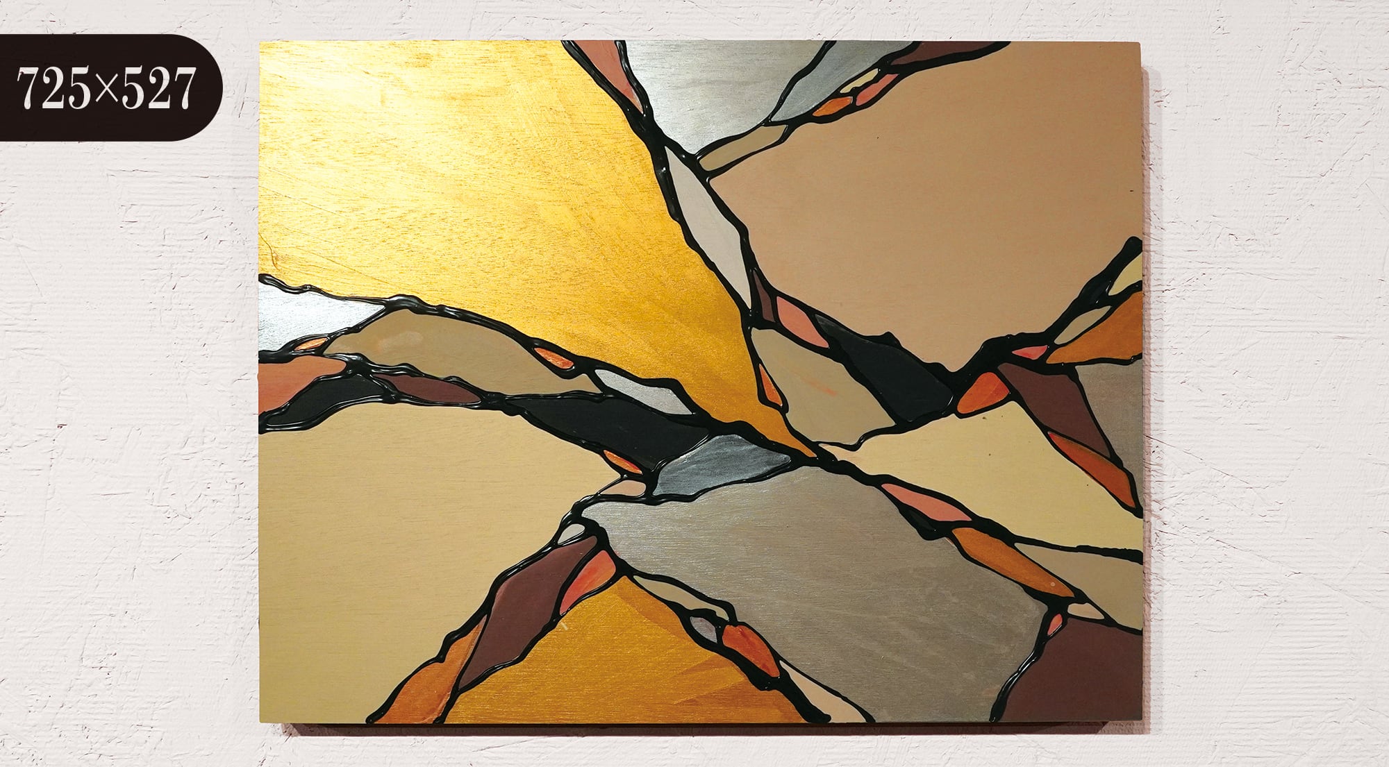 ●画材:①カラージェッソ(アクリル画材)/ホルベイン社、②木工用ボンド(酢酸ビニル樹脂 ※ホルムアルデヒド、フタル酸系可塑剤は使用していません)/コニシ株式会社、③ネオカラーブラック(水性絵具)/ターナー色彩株式会社