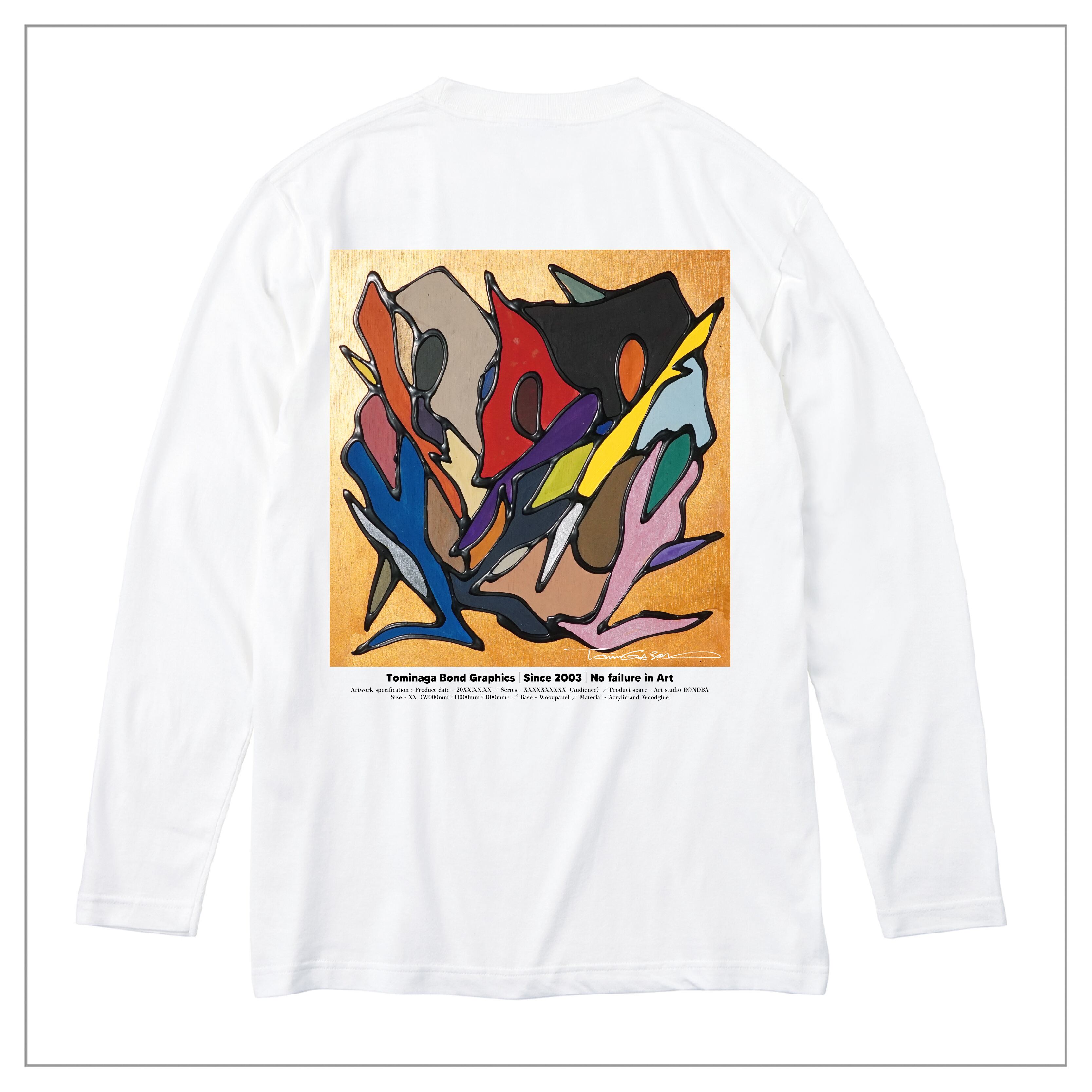 冨永ボンドの原画作品を背面に大きくプリント。作品の色彩とディティールを鮮明に再現した「プレミアムインクジェット印刷」の長袖Tシャツ(ロングスリーブTシャツ)です。