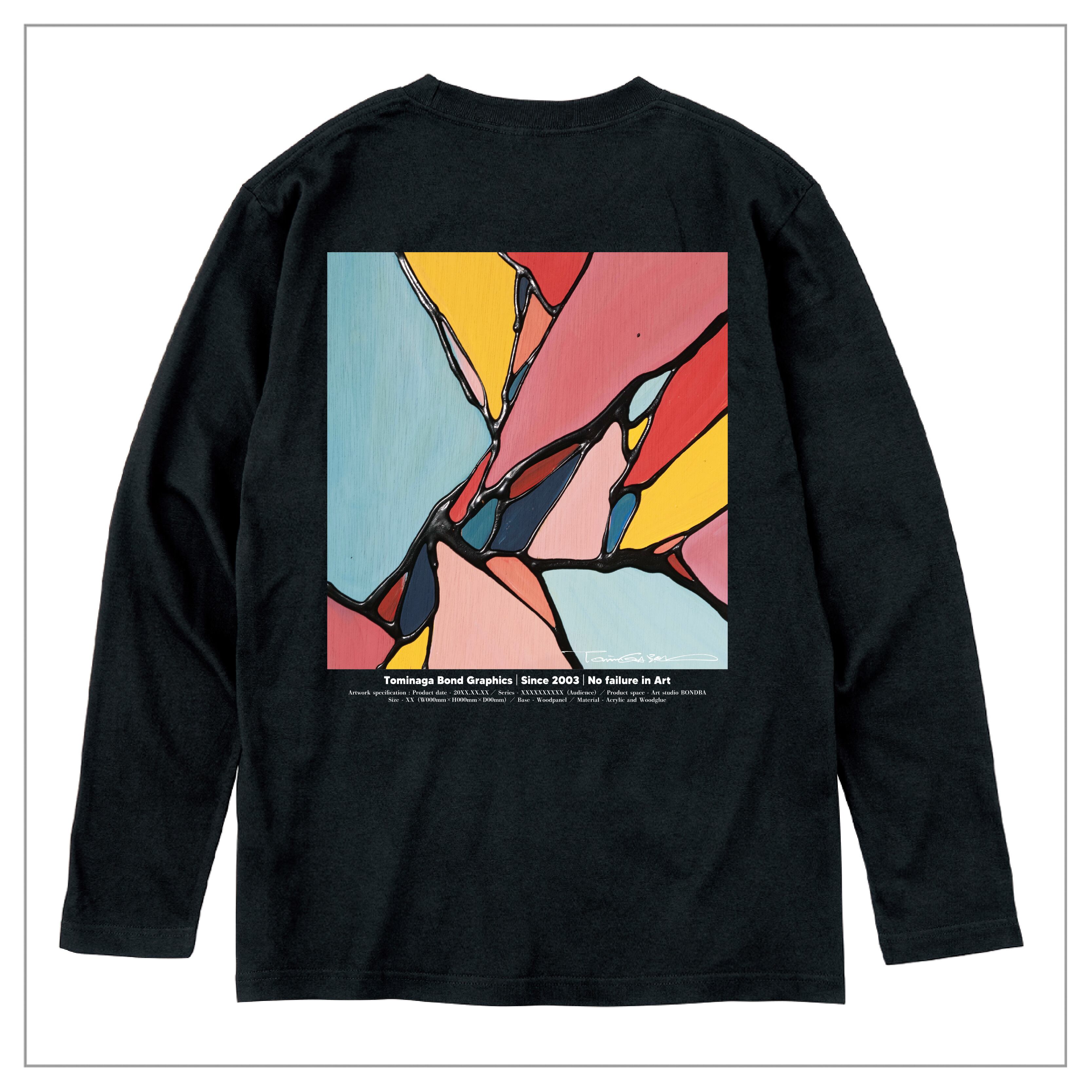 冨永ボンドの原画作品を背面に大きくプリント。作品の色彩とディティールを鮮明に再現した「プレミアムインクジェット印刷」の長袖Tシャツ(ロングスリーブTシャツ)です。