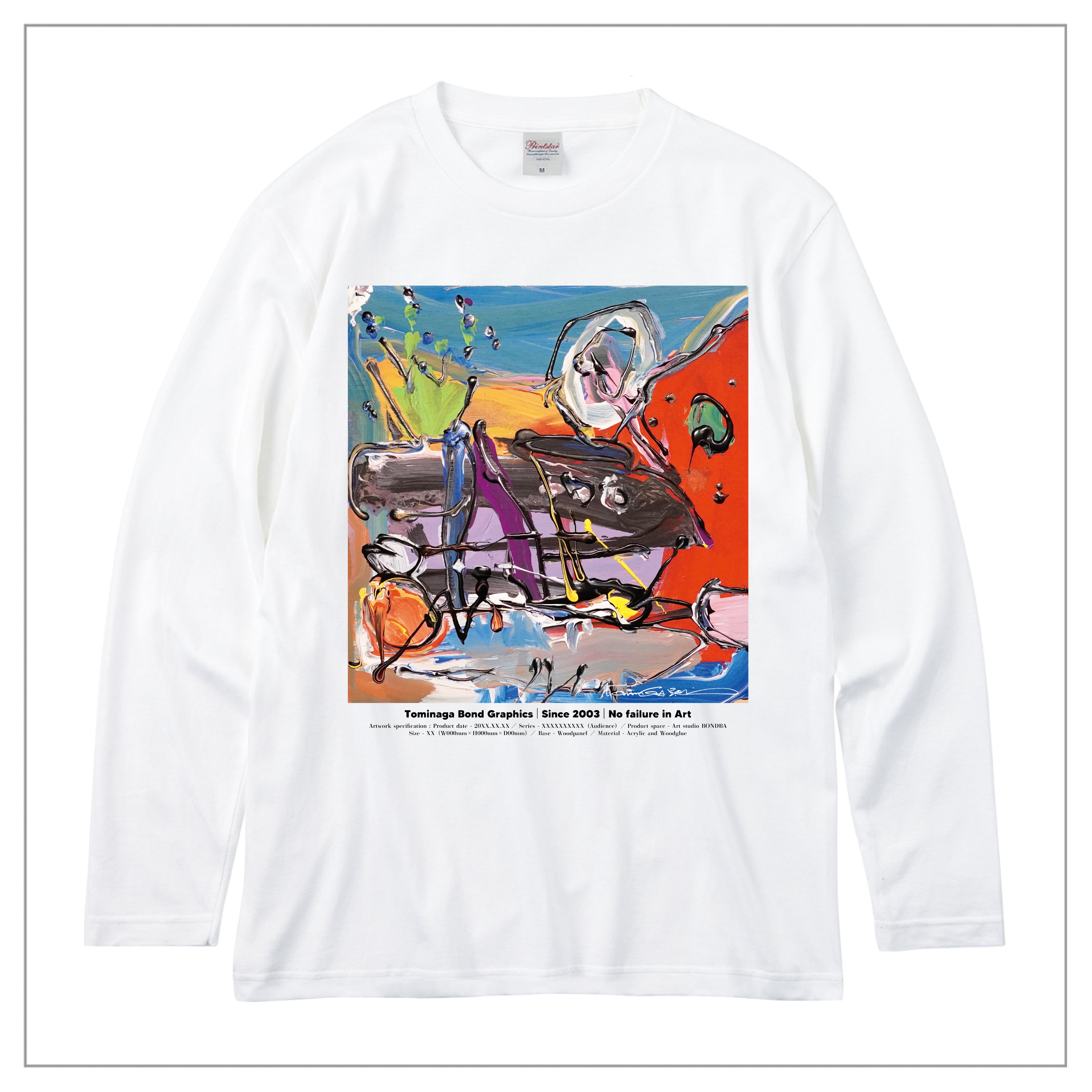冨永ボンドの原画作品を前面に大きくプリント。作品の色彩とディティールを鮮明に再現した「プレミアムインクジェット印刷」の長袖Tシャツ(ロングスリーブTシャツ)です。