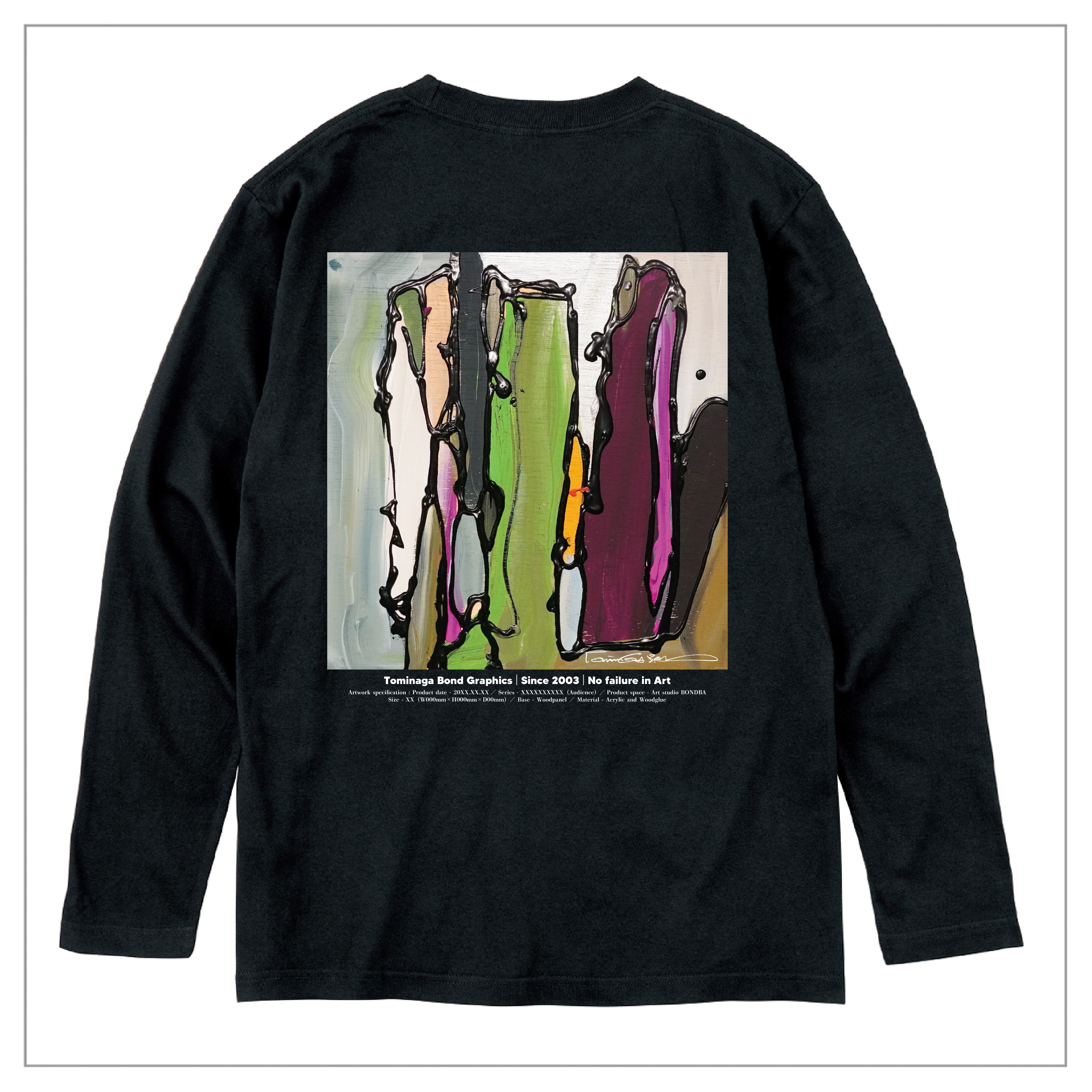 冨永ボンドの原画作品を背面に大きくプリント。作品の色彩とディティールを鮮明に再現した「プレミアムインクジェット印刷」の長袖Tシャツ(ロングスリーブTシャツ)です。