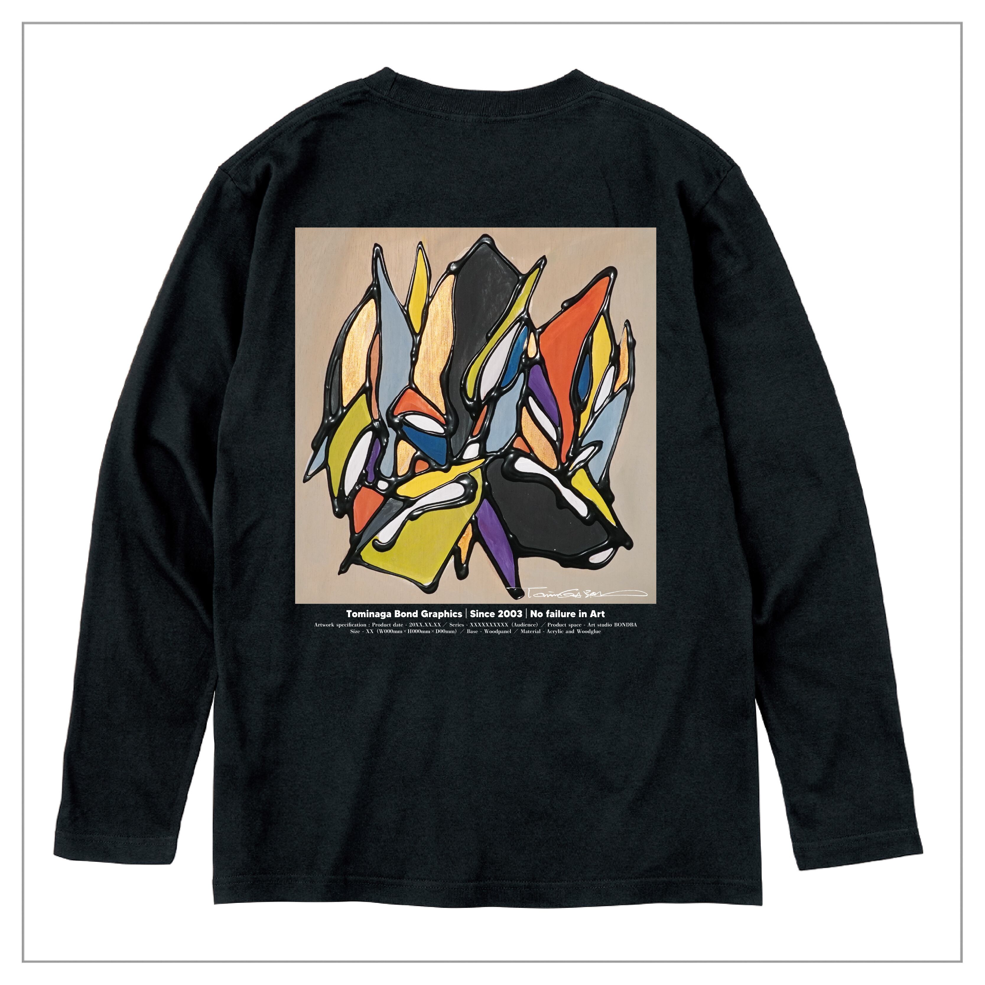 冨永ボンドの原画作品を背面に大きくプリント。作品の色彩とディティールを鮮明に再現した「プレミアムインクジェット印刷」の長袖Tシャツ(ロングスリーブTシャツ)です。