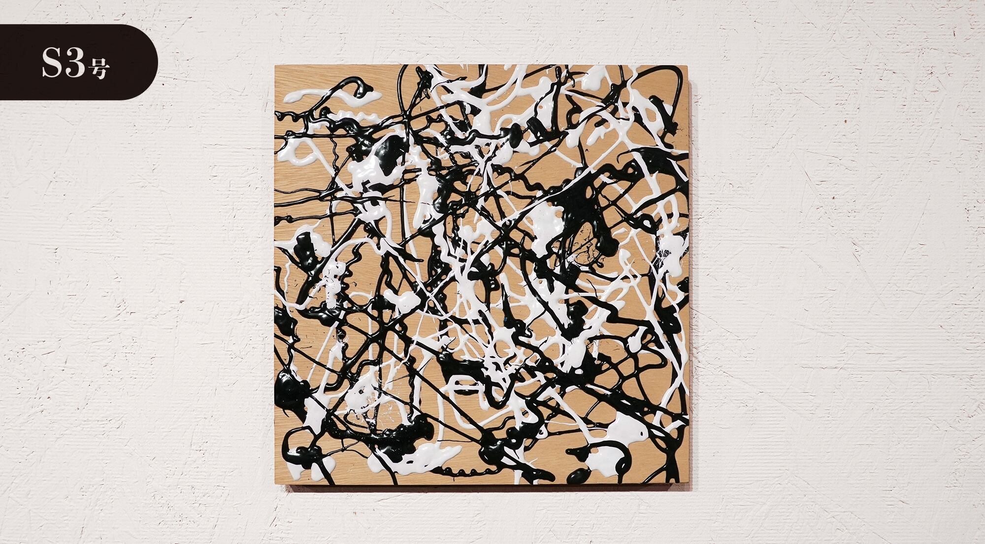 ●画材:①カラージェッソ(アクリル画材)/ホルベイン社、②木工用ボンド(酢酸ビニル樹脂 ※ホルムアルデヒド、フタル酸系可塑剤は使用していません)/コニシ株式会社、③ネオカラーブラック(水性絵具)/ターナー色彩株式会社