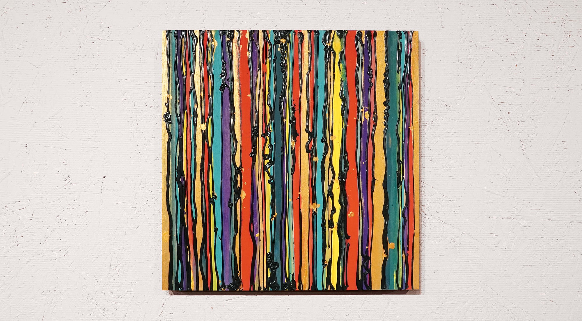 ●画材:①カラージェッソ(アクリル画材)/ホルベイン社、②木工用ボンド(酢酸ビニル樹脂 ※ホルムアルデヒド、フタル酸系可塑剤は使用していません)/コニシ株式会社、③ネオカラーブラック(水性絵具)/ターナー色彩株式会社