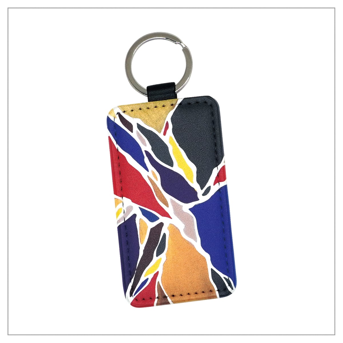 ボンドで絵を描く画家「冨永ボンド」の作品の絵柄を全面プリントした長方形レザーキーホルダーです。