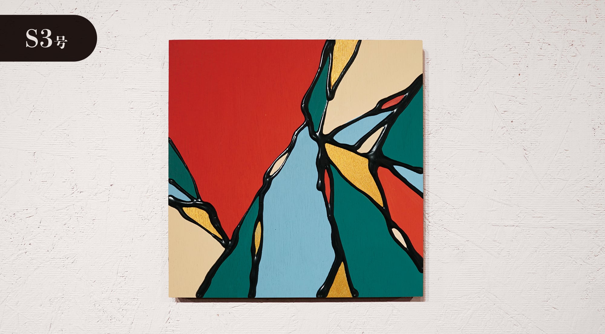 ●画材:①カラージェッソ(アクリル画材)/ホルベイン社、②木工用ボンド(酢酸ビニル樹脂 ※ホルムアルデヒド、フタル酸系可塑剤は使用していません)/コニシ株式会社、③ネオカラーブラック(水性絵具)/ターナー色彩株式会社