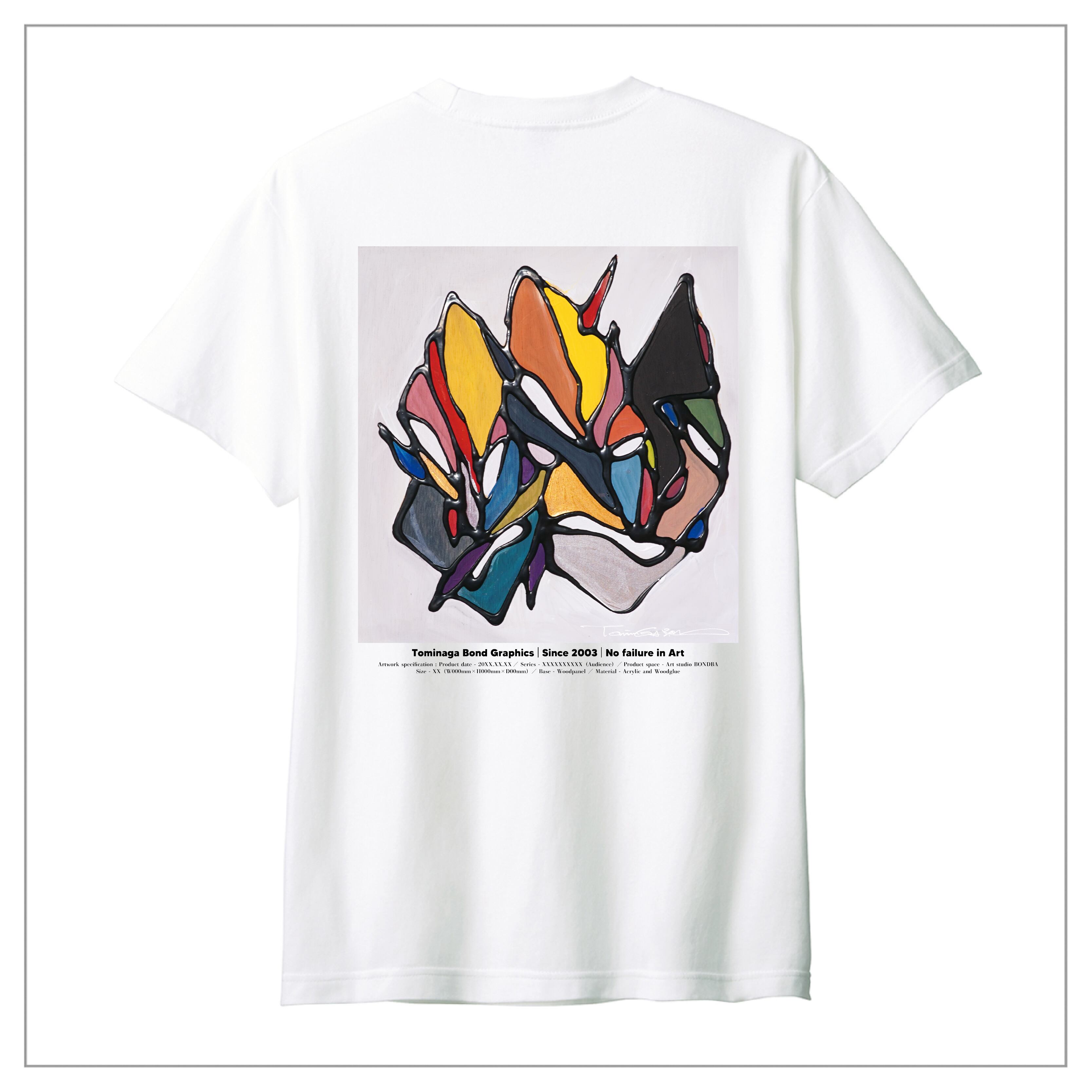 冨永ボンドの原画作品を背面に大きくプリント。作品のディティールまで鮮明に再現が可能な「プレミアムインクジェット印刷」のTシャツです。
