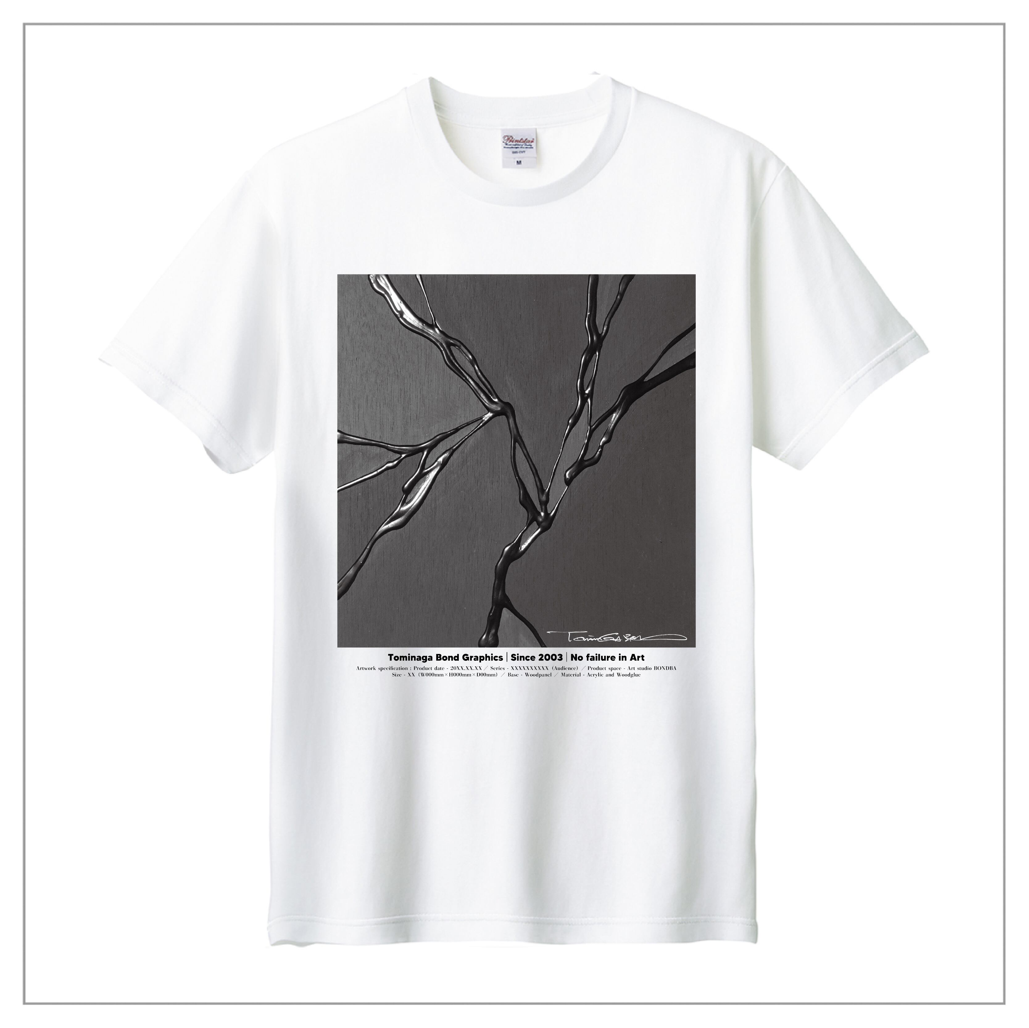 冨永ボンドの原画作品を背面に大きくプリント。作品のディティールまで鮮明に再現が可能な「プレミアムインクジェット印刷」のTシャツです。