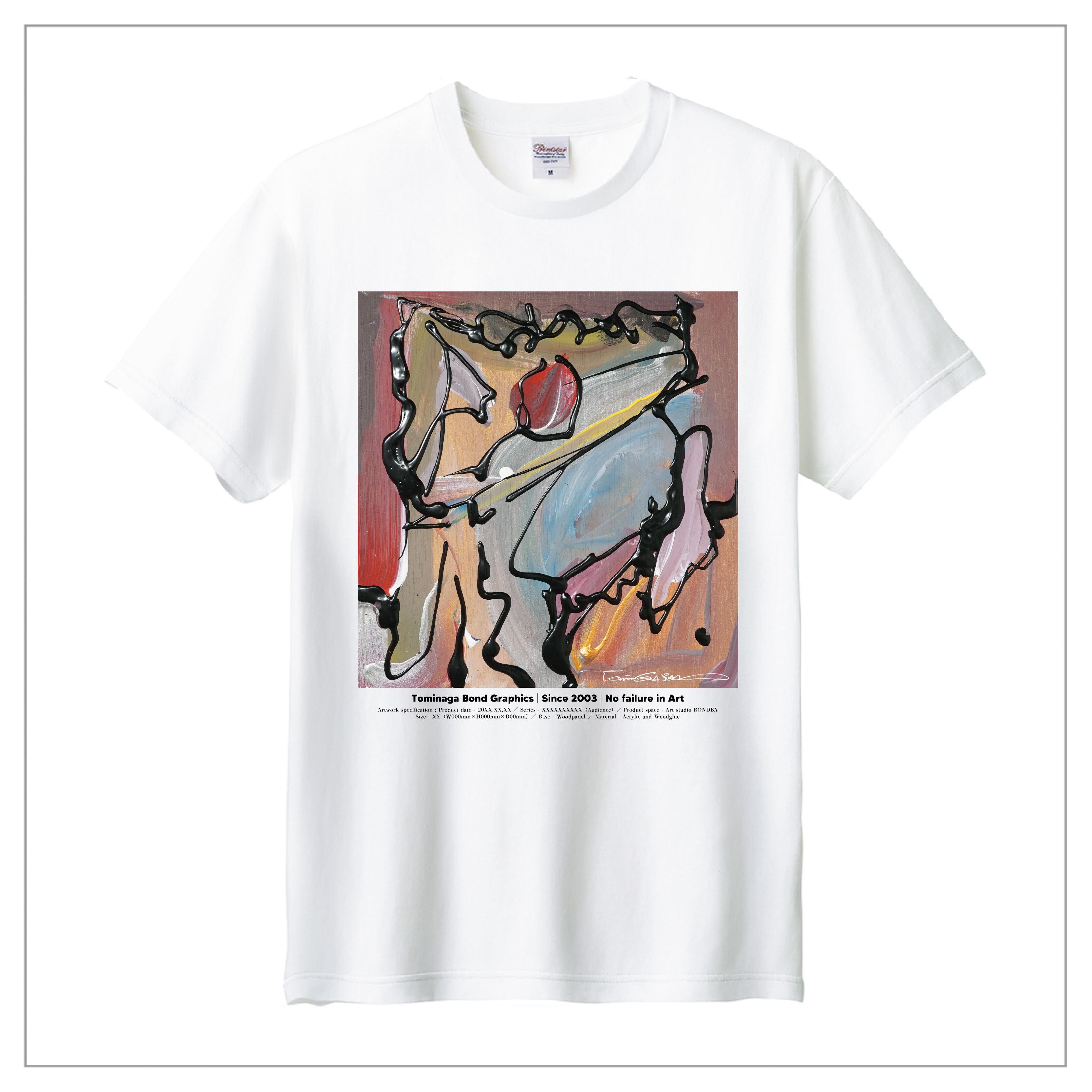 冨永ボンドの原画作品を背面に大きくプリント。作品のディティールまで鮮明に再現が可能な「プレミアムインクジェット印刷」のTシャツです。