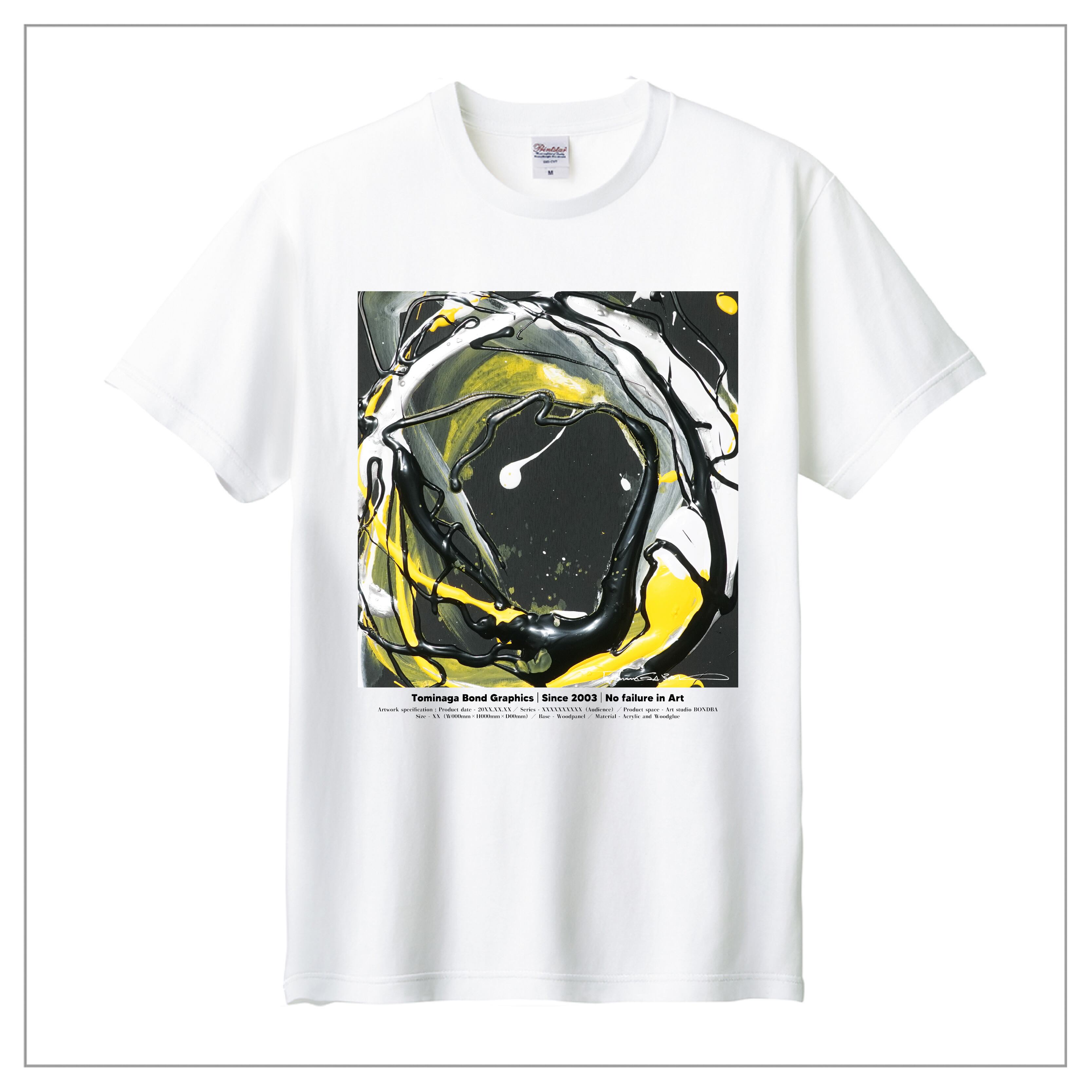 冨永ボンドの原画作品を背面に大きくプリント。作品のディティールまで鮮明に再現が可能な「プレミアムインクジェット印刷」のTシャツです。