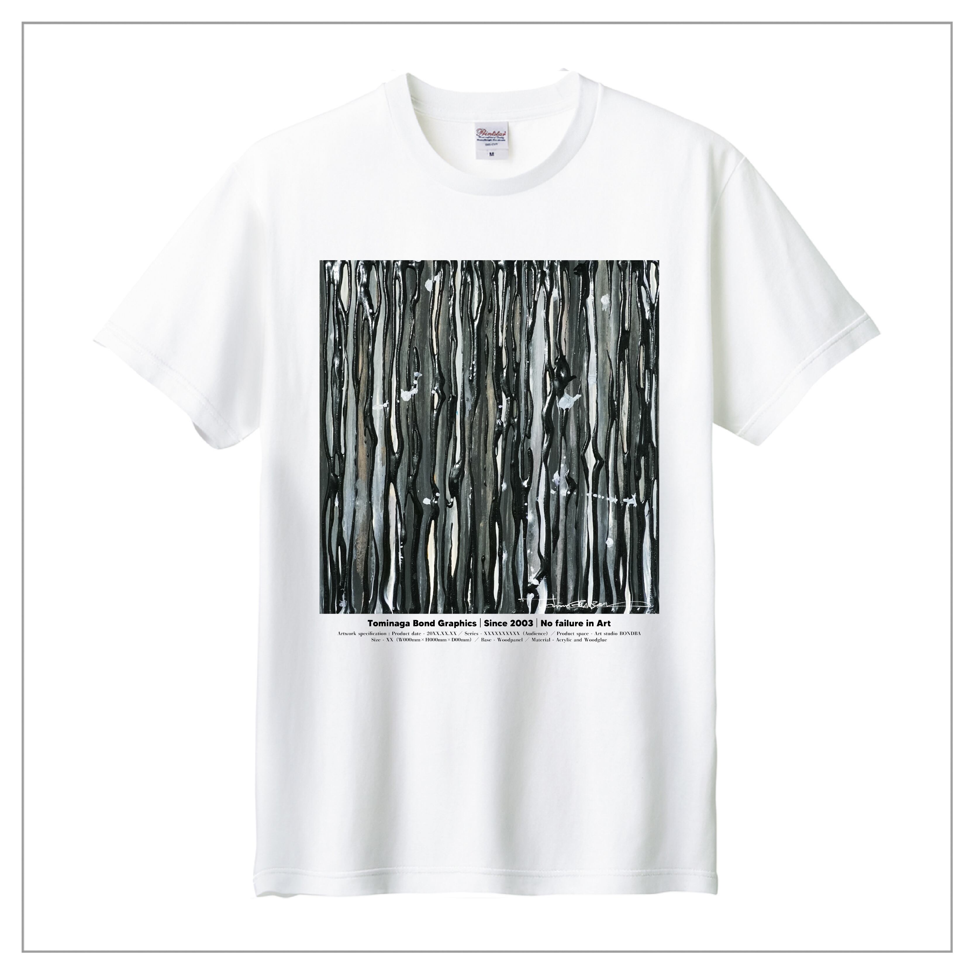 冨永ボンドの原画作品を背面に大きくプリント。作品のディティールまで鮮明に再現が可能な「プレミアムインクジェット印刷」のTシャツです。