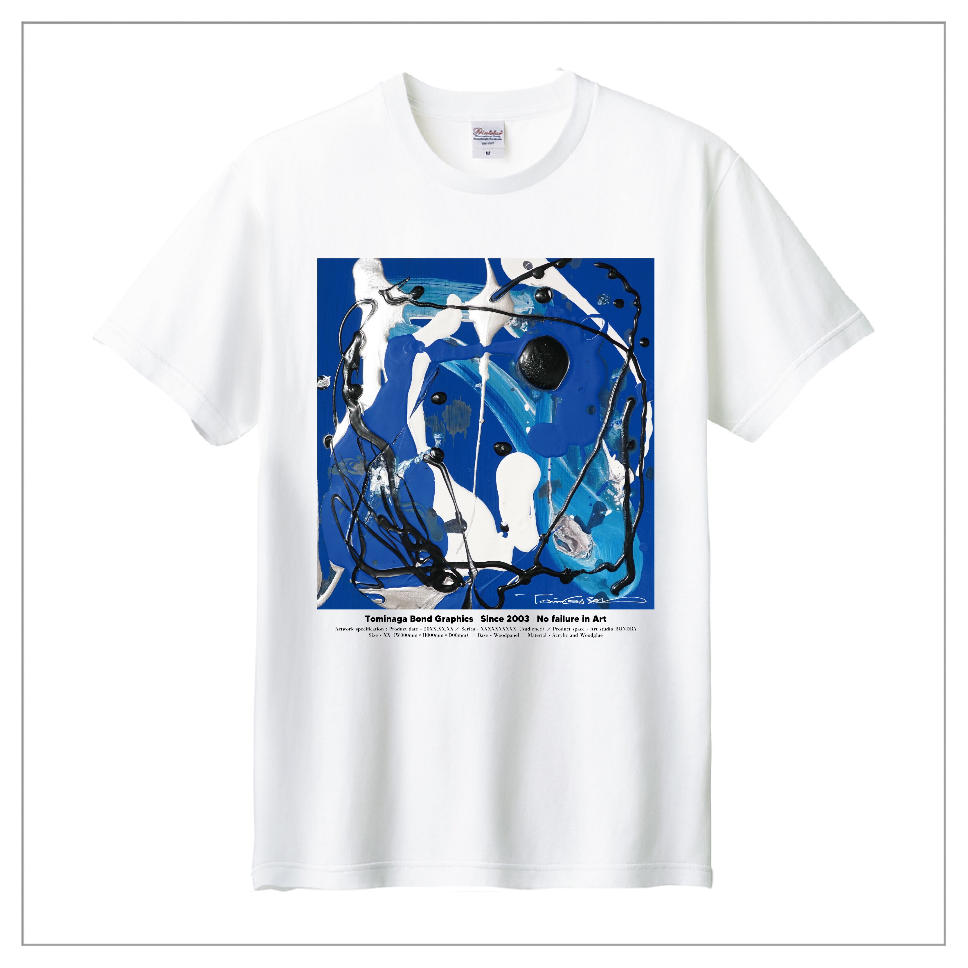冨永ボンドの原画作品を背面に大きくプリント。作品のディティールまで鮮明に再現が可能な「プレミアムインクジェット印刷」のTシャツです。