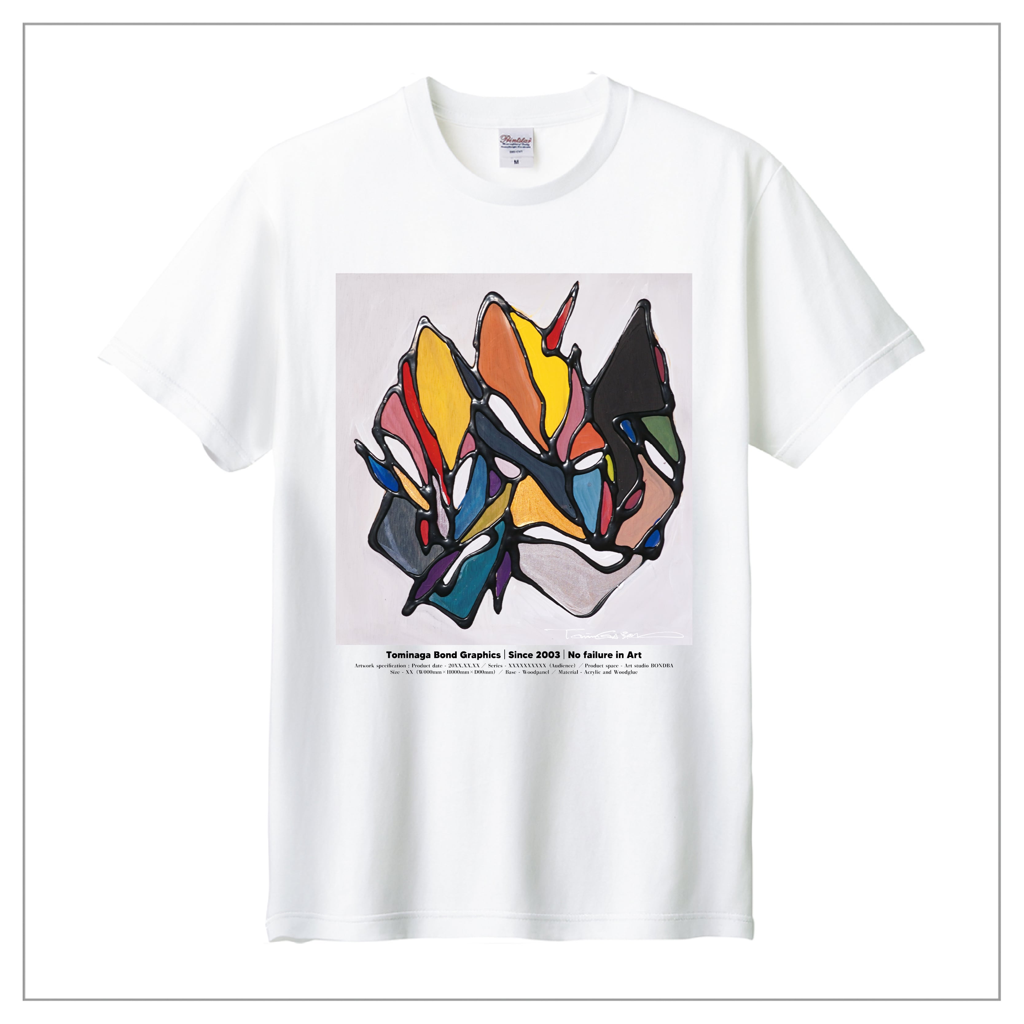 冨永ボンドの原画作品を背面に大きくプリント。作品のディティールまで鮮明に再現が可能な「プレミアムインクジェット印刷」のTシャツです。