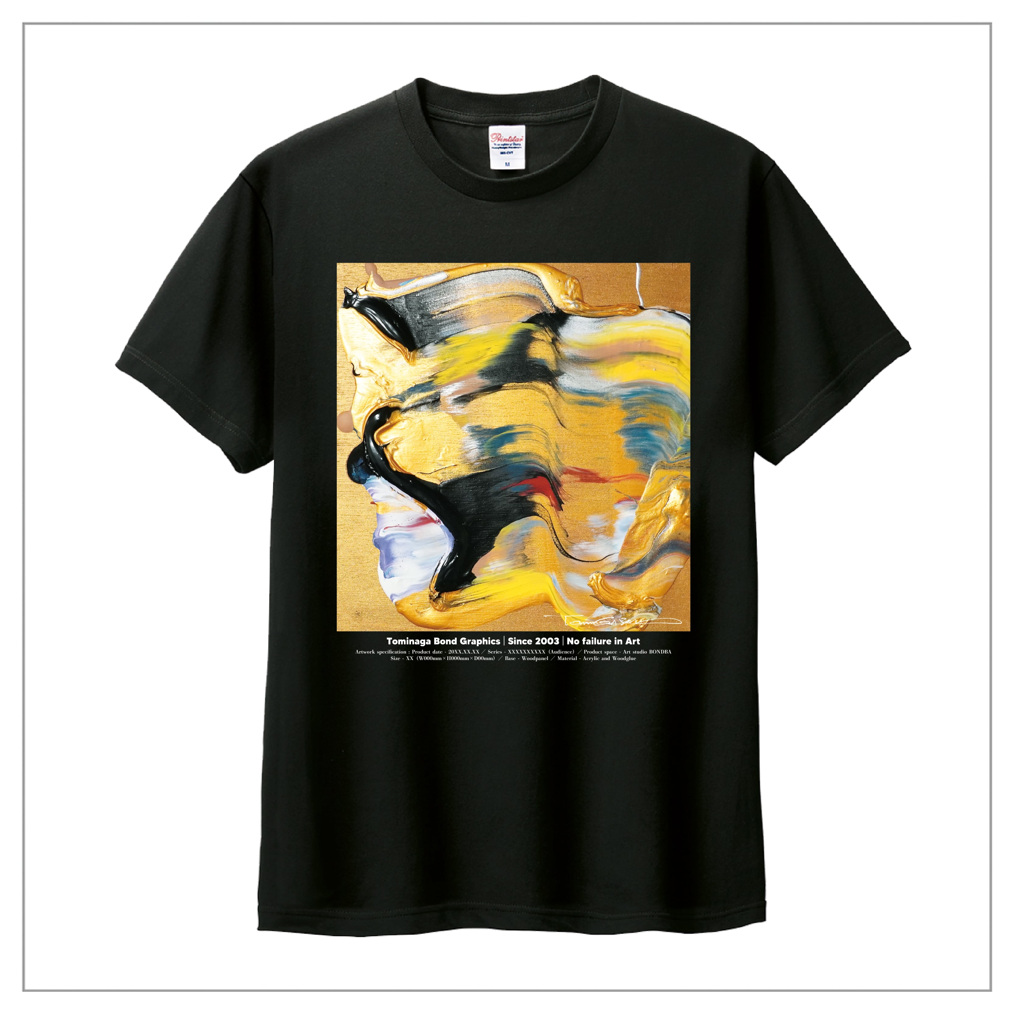 冨永ボンドの原画作品を前面に大きくプリント。作品のディティールまで鮮明に再現が可能な「プレミアムインクジェット印刷」のTシャツです。