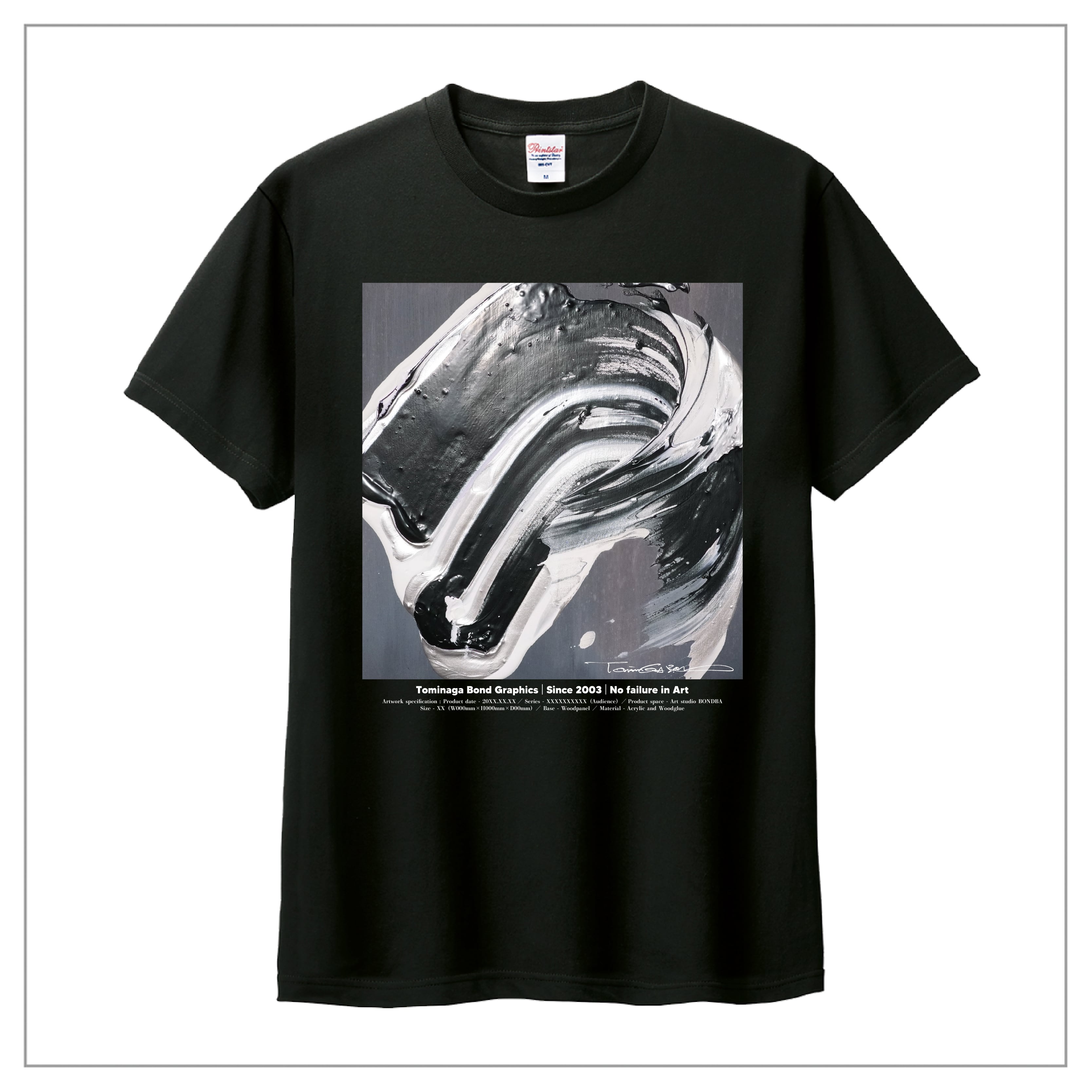 冨永ボンドの原画作品を前面に大きくプリント。作品のディティールまで鮮明に再現が可能な「プレミアムインクジェット印刷」のTシャツです。