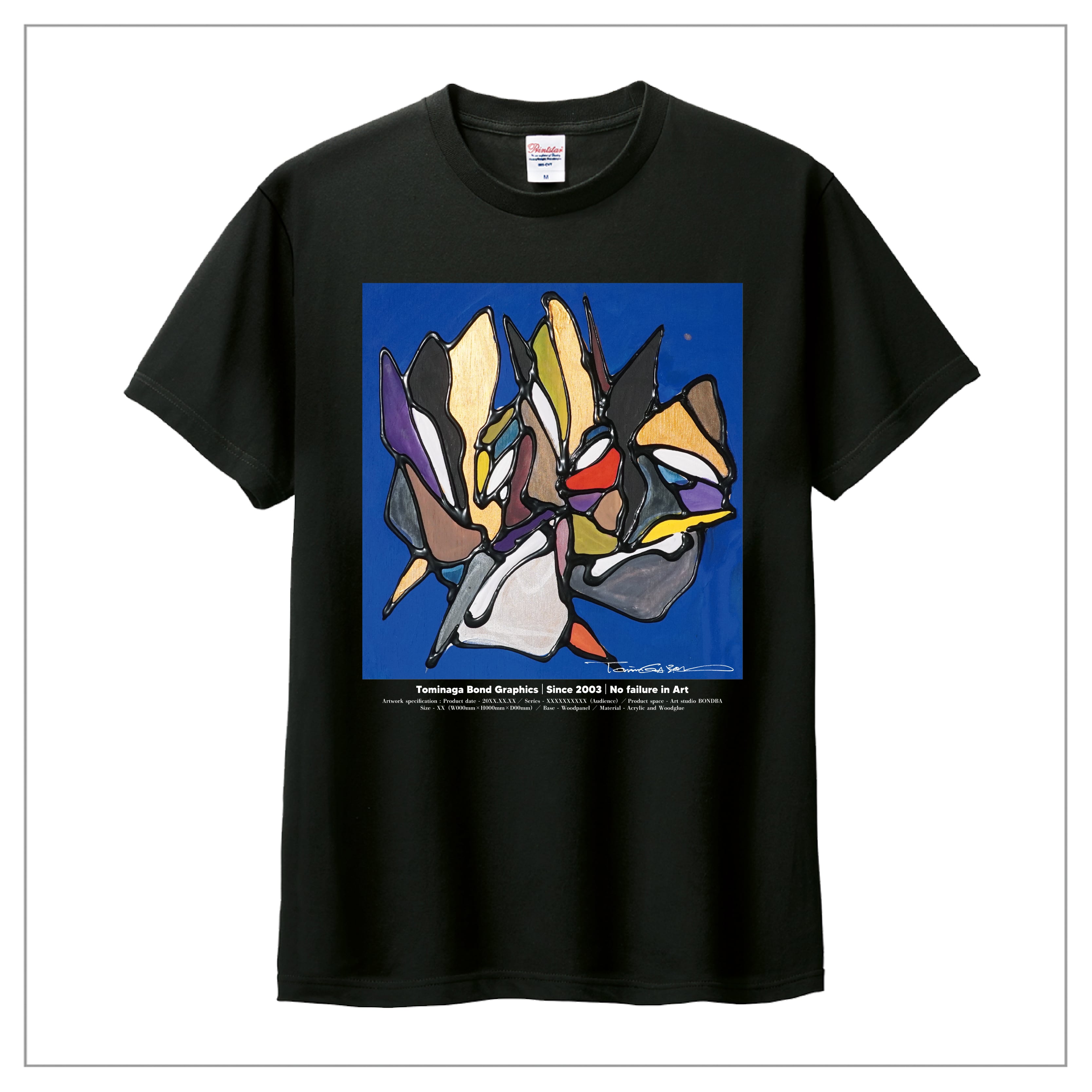 冨永ボンドの原画作品を前面に大きくプリント。作品のディティールまで鮮明に再現が可能な「プレミアムインクジェット印刷」のTシャツです。