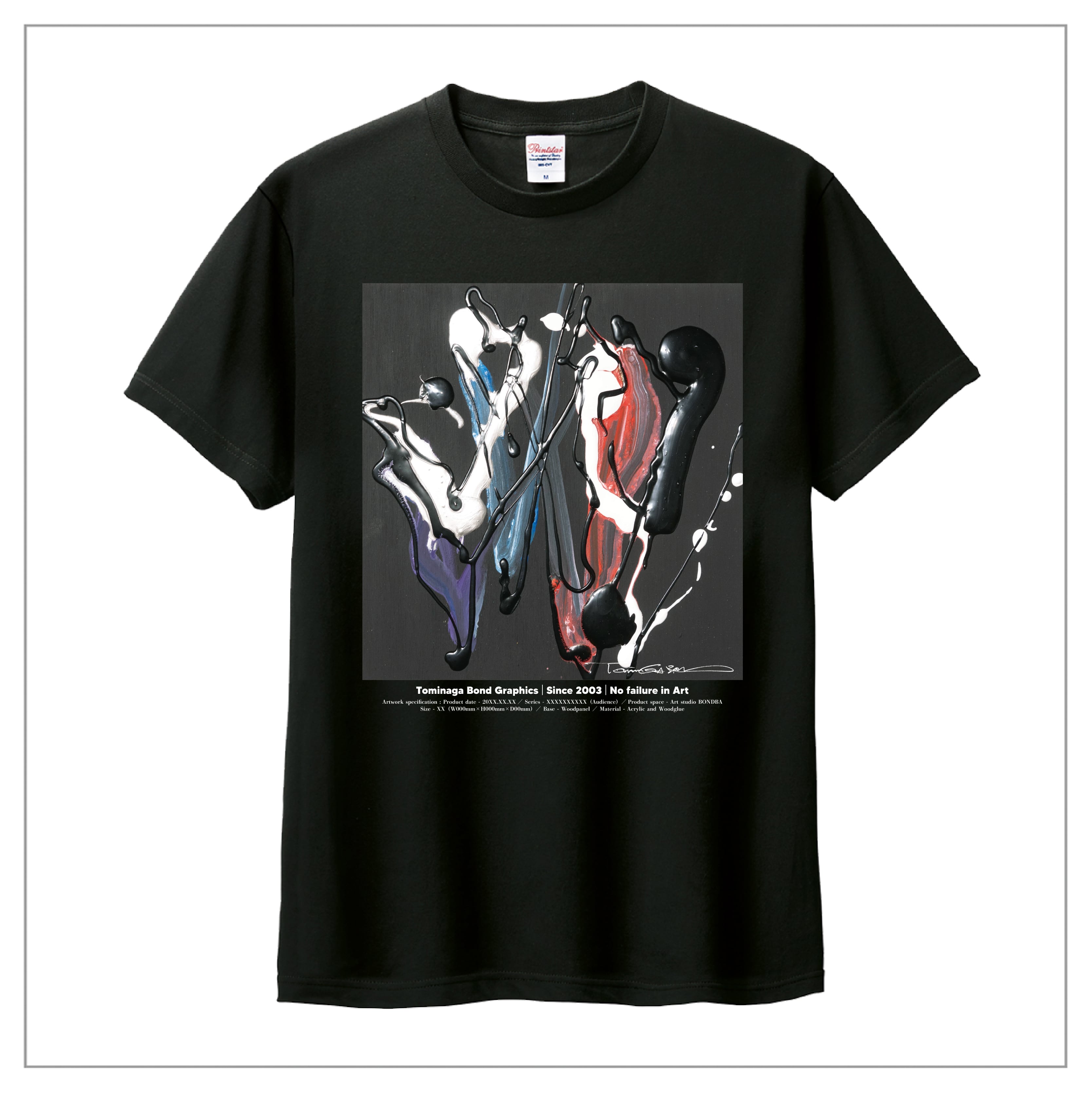 冨永ボンドの原画作品を前面に大きくプリント。作品のディティールまで鮮明に再現が可能な「プレミアムインクジェット印刷」のTシャツです。