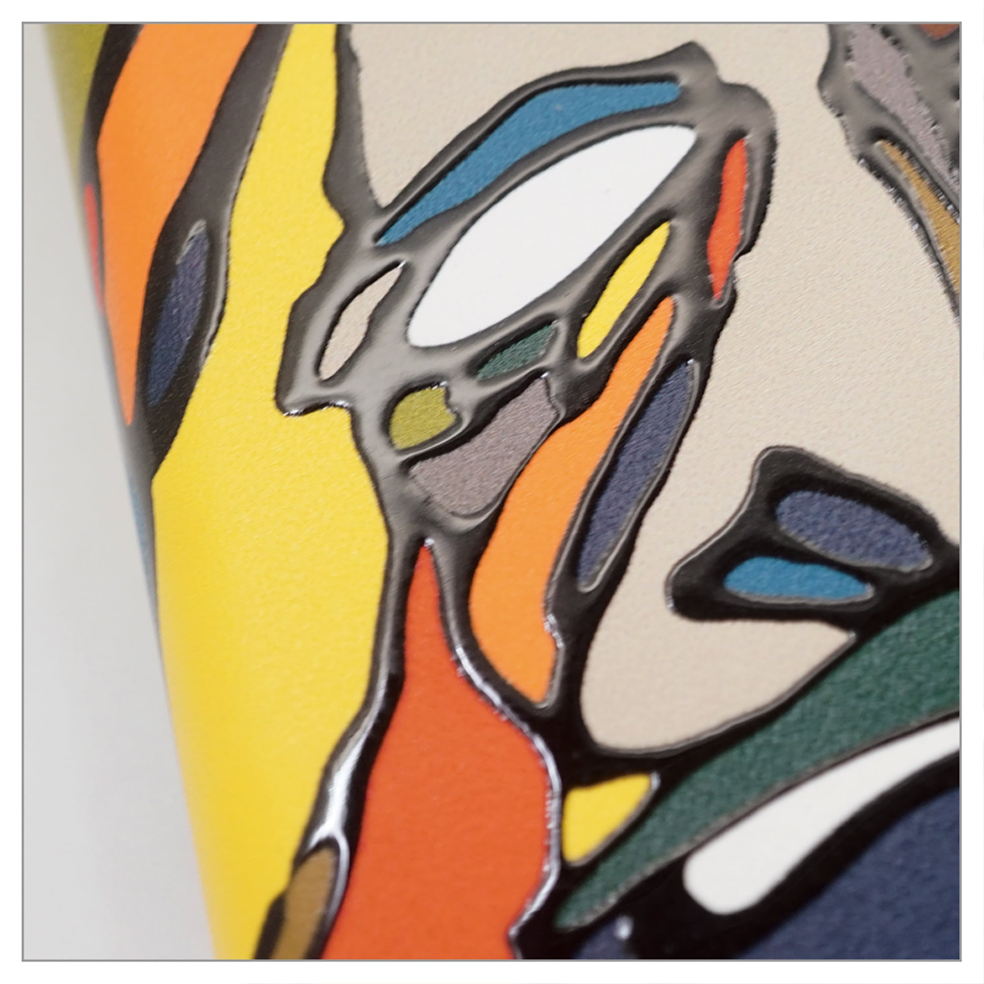 ボンドで描く画家「冨永ボンド」が描いたボンドアート作品群「第1章/FACE」の色彩と絵肌を再現した、オリジナル名刺ケースです。