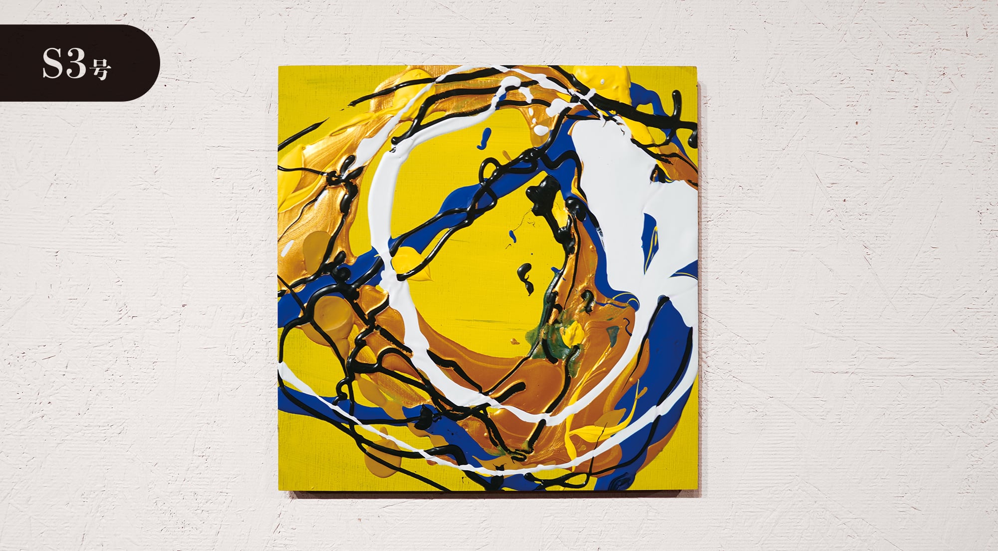 ●画材:①カラージェッソ(アクリル画材)/ホルベイン社、②木工用ボンド(酢酸ビニル樹脂 ※ホルムアルデヒド、フタル酸系可塑剤は使用していません)/コニシ株式会社、③ネオカラーブラック(水性絵具)/ターナー色彩株式会社