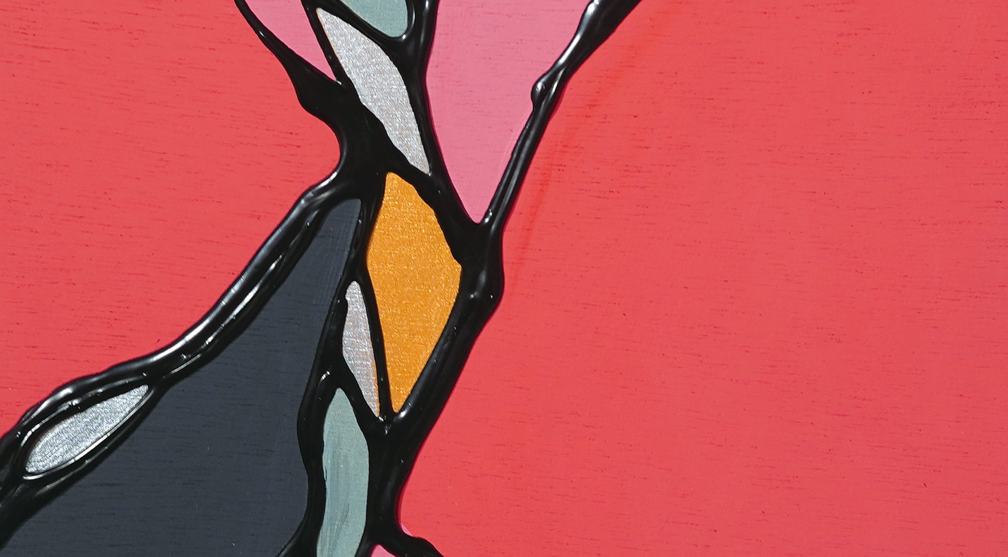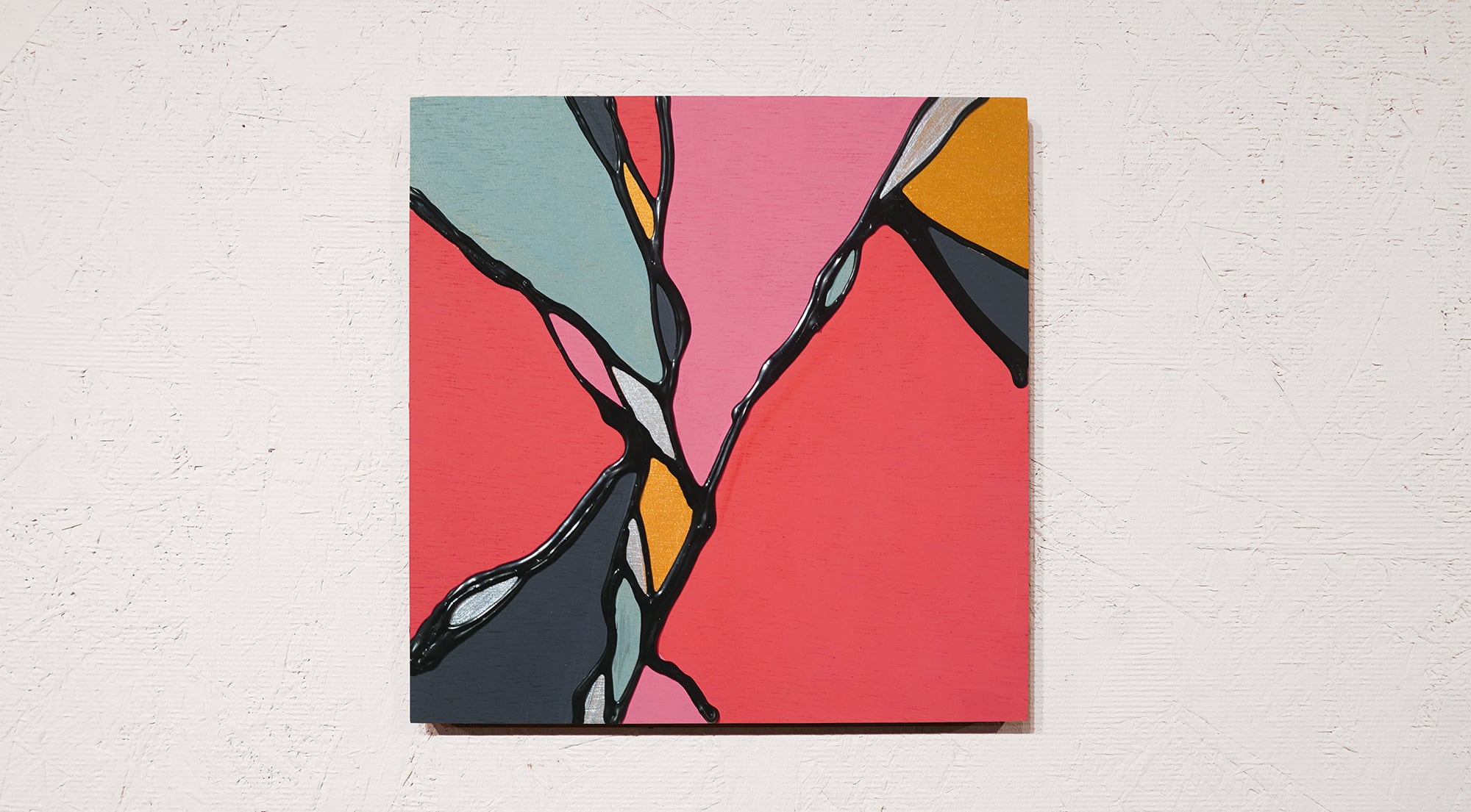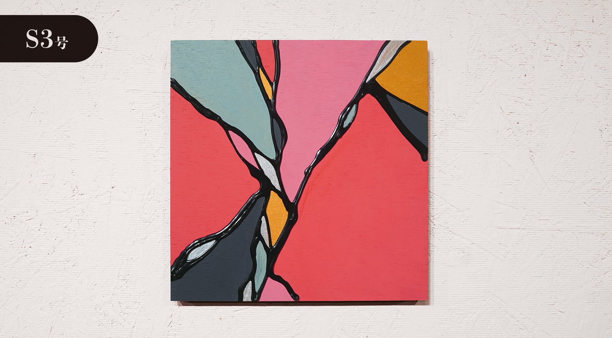 ●画材:①カラージェッソ(アクリル画材)/ホルベイン社、②木工用ボンド(酢酸ビニル樹脂 ※ホルムアルデヒド、フタル酸系可塑剤は使用していません)/コニシ株式会社、③ネオカラーブラック(水性絵具)/ターナー色彩株式会社