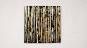 ●画材:①カラージェッソ(アクリル画材)/ホルベイン社、②木工用ボンド(酢酸ビニル樹脂 ※ホルムアルデヒド、フタル酸系可塑剤は使用していません)/コニシ株式会社、③ネオカラーブラック(水性絵具)/ターナー色彩株式会社