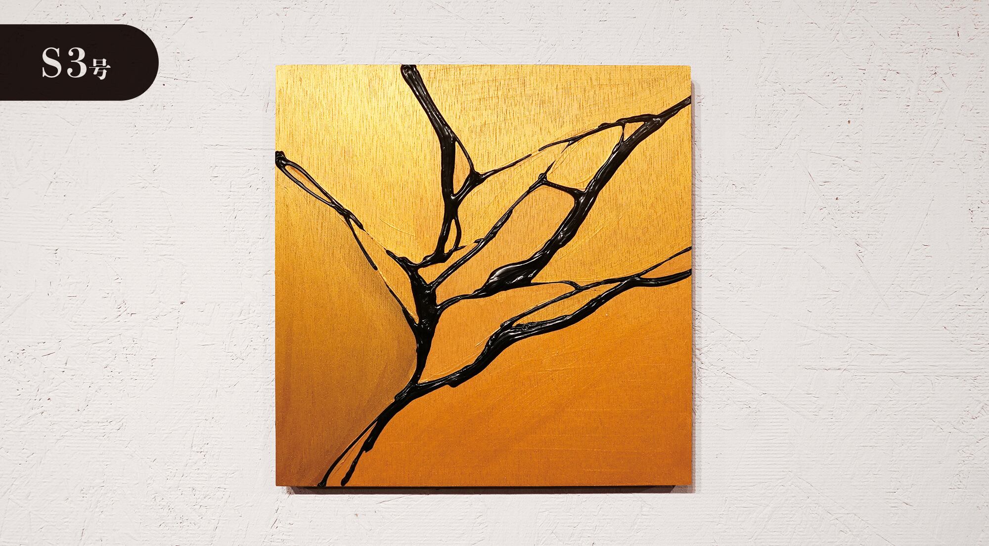 ●画材:①カラージェッソ(アクリル画材)/ホルベイン社、②木工用ボンド(酢酸ビニル樹脂 ※ホルムアルデヒド、フタル酸系可塑剤は使用していません)/コニシ株式会社、③ネオカラーブラック(水性絵具)/ターナー色彩株式会社