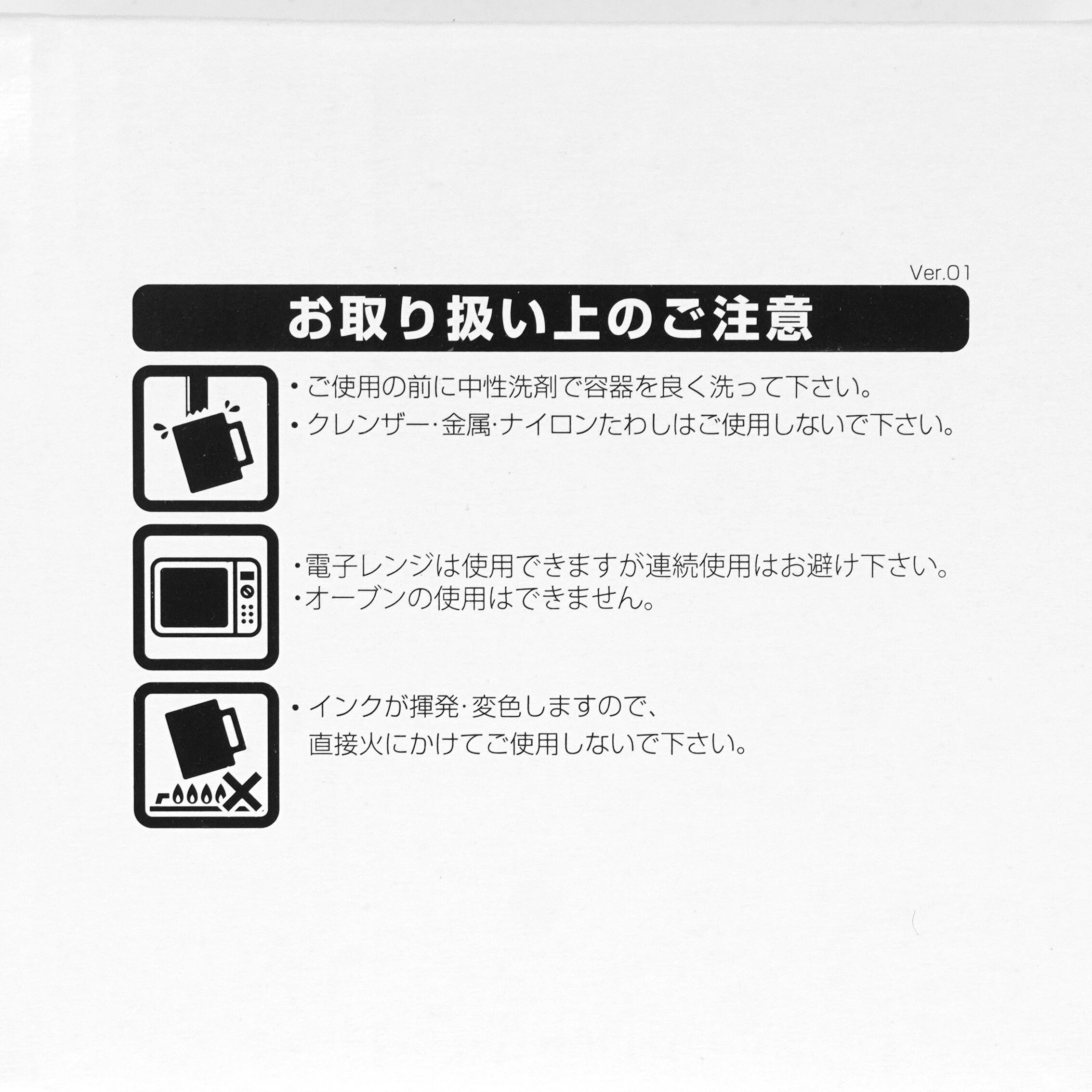 ・電子レンジ使用は可能ですが、高温になると印刷面に影響が生じますので連続加熱はおやめ下さい。