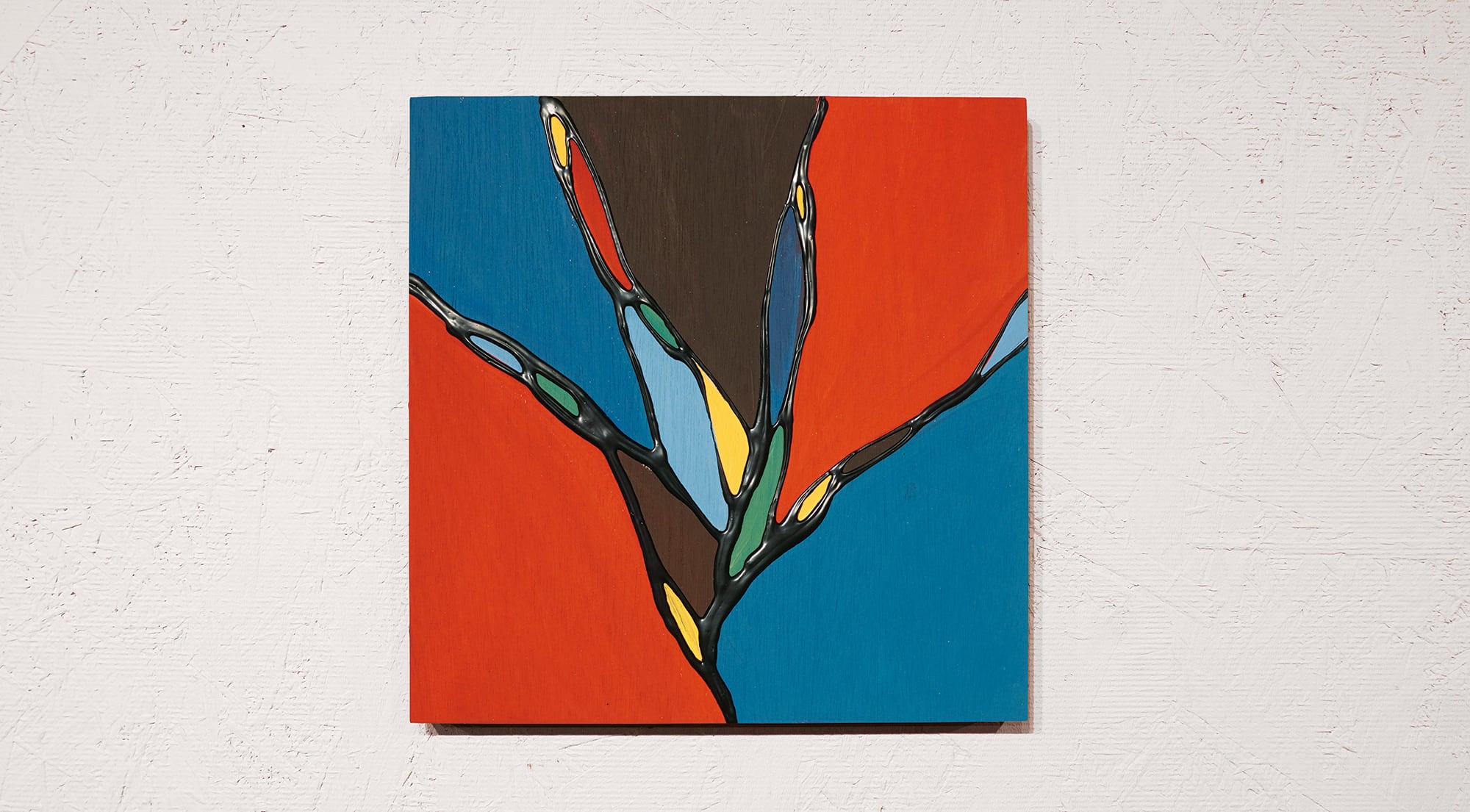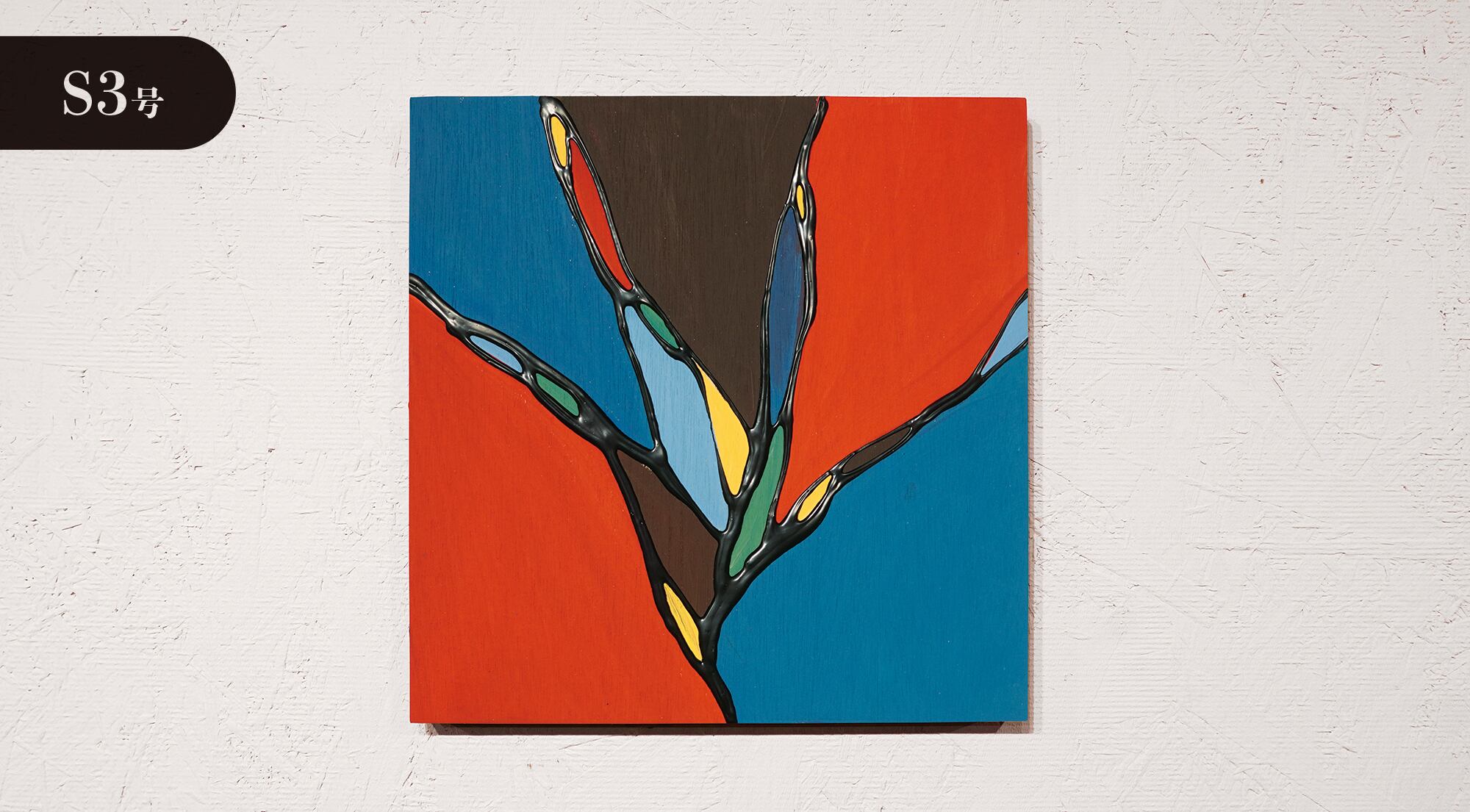 ●画材:①カラージェッソ(アクリル画材)/ホルベイン社、②木工用ボンド(酢酸ビニル樹脂 ※ホルムアルデヒド、フタル酸系可塑剤は使用していません)/コニシ株式会社、③ネオカラーブラック(水性絵具)/ターナー色彩株式会社