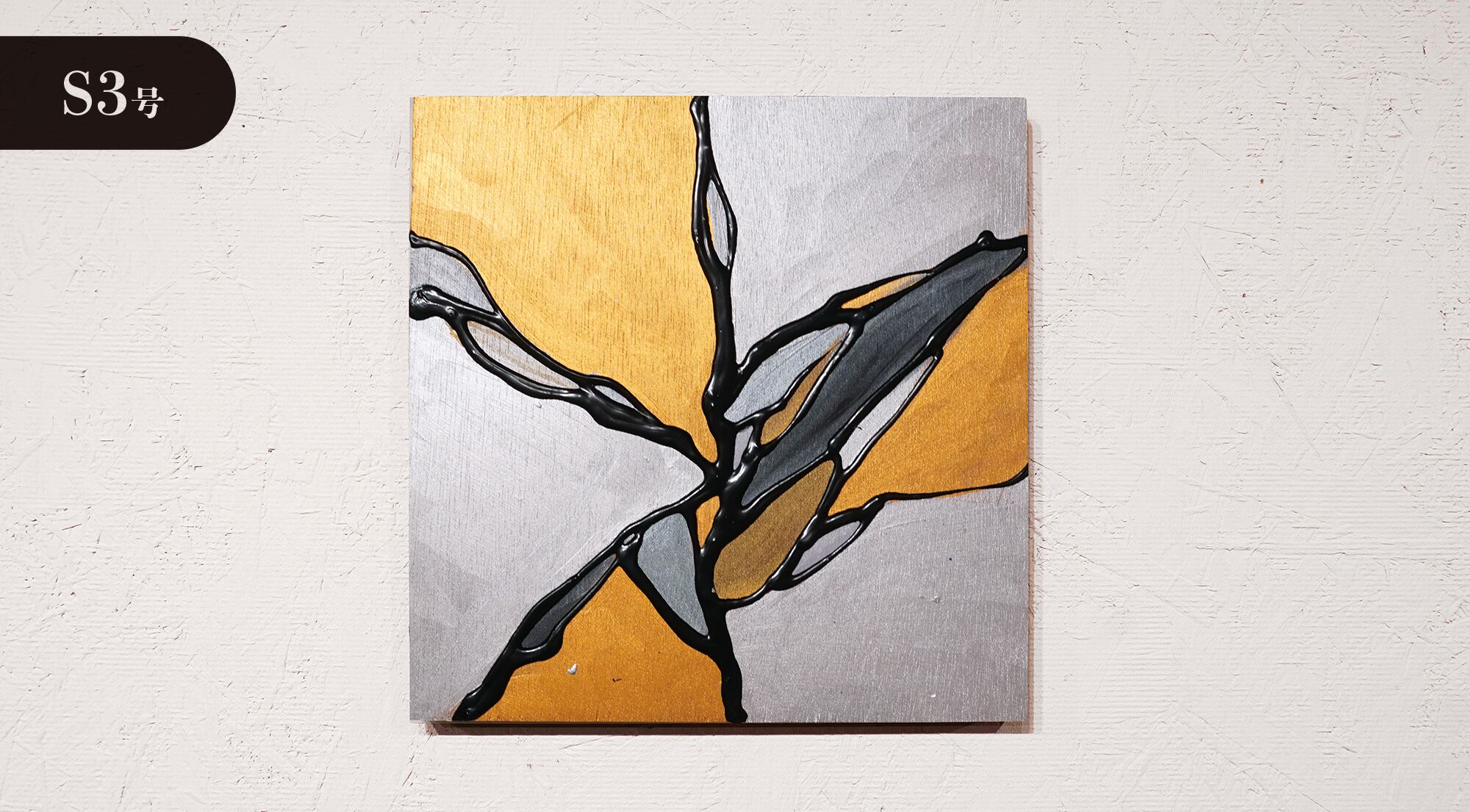 ●画材:①カラージェッソ(アクリル画材)/ホルベイン社、②木工用ボンド(酢酸ビニル樹脂 ※ホルムアルデヒド、フタル酸系可塑剤は使用していません)/コニシ株式会社、③ネオカラーブラック(水性絵具)/ターナー色彩株式会社