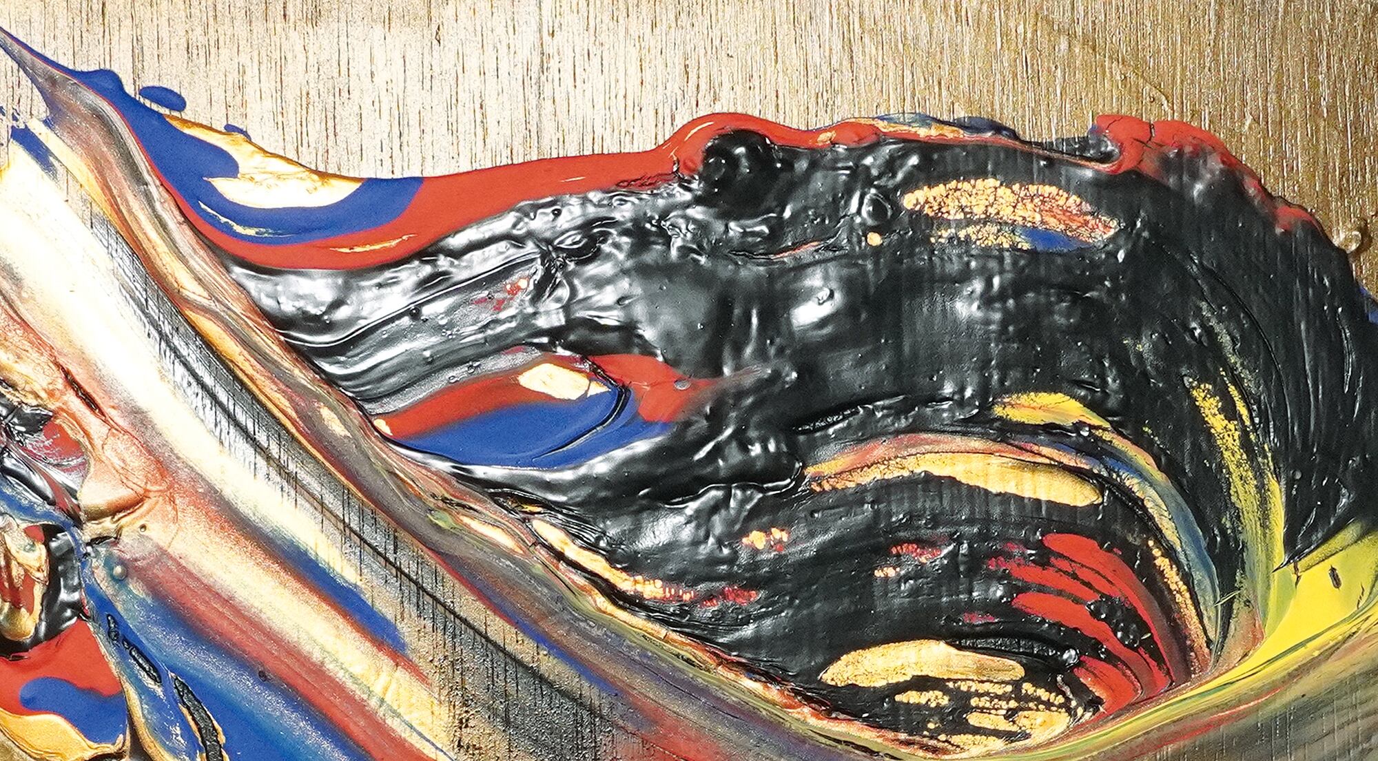 ●画材:①カラージェッソ(アクリル画材)/ホルベイン社、②木工用ボンド(酢酸ビニル樹脂 ※ホルムアルデヒド、フタル酸系可塑剤は使用していません)/コニシ株式会社、③ネオカラーブラック(水性絵具)/ターナー色彩株式会社