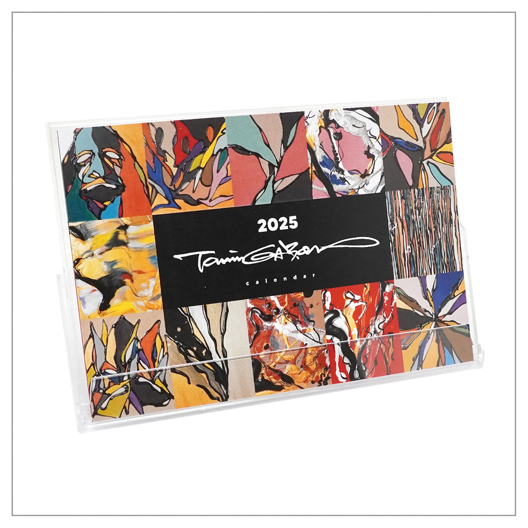 ボンドで絵を描く画家、冨永ボンドの作品をプリントした2025年の卓上カレンダーです。